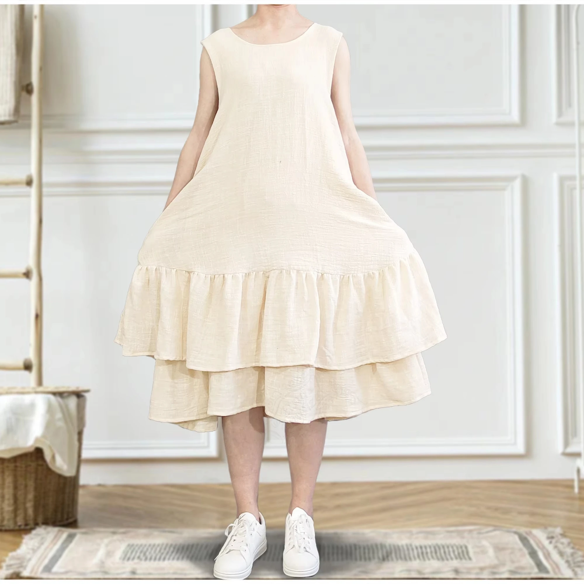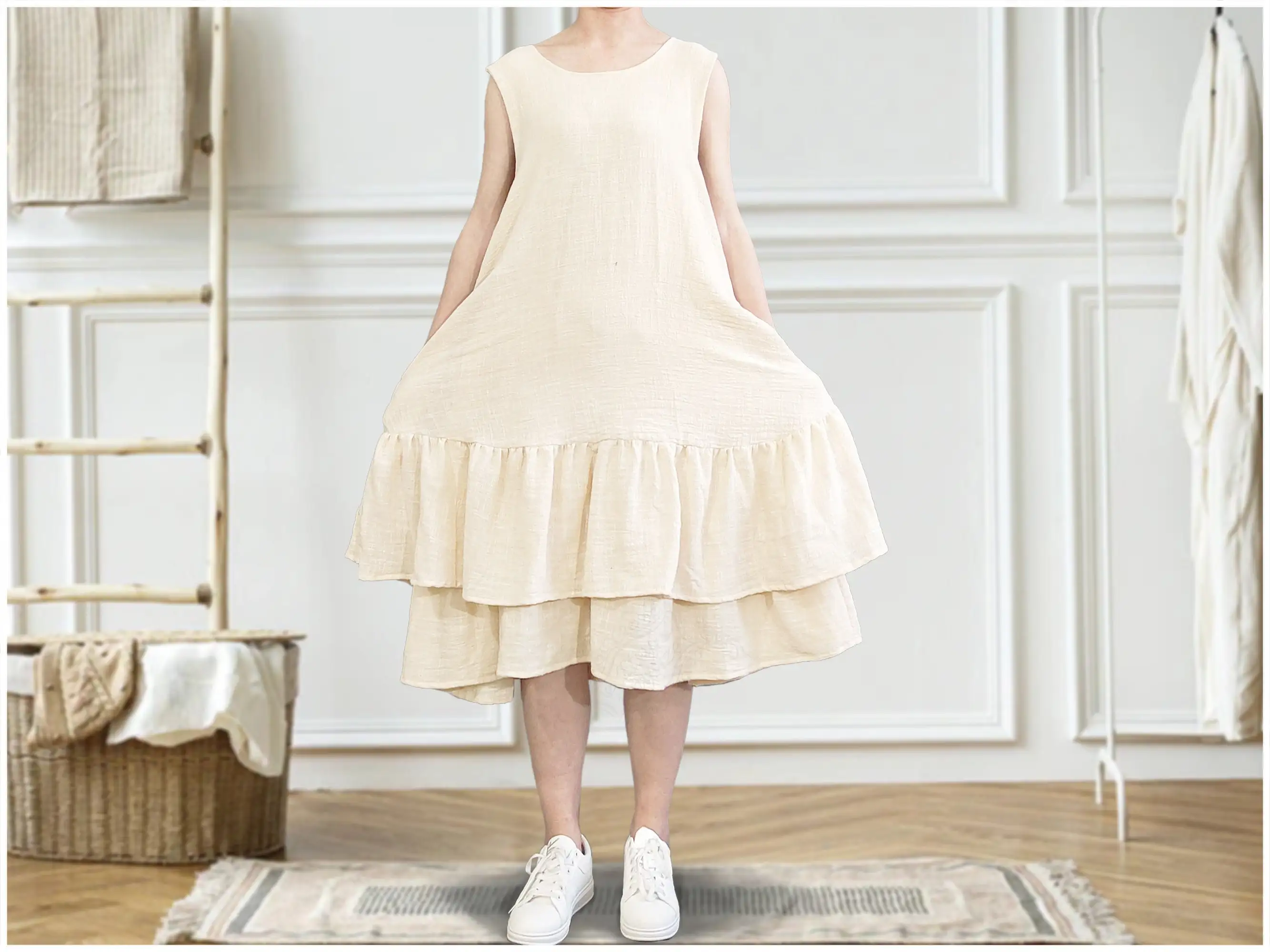 Product Name: Dress Woman 100% Linen Natural Sleeveless Maxi Dresses Summer Collarless Women Maxi Linen Long Loose Dress From Vietnam