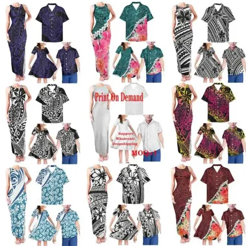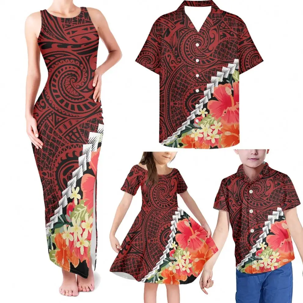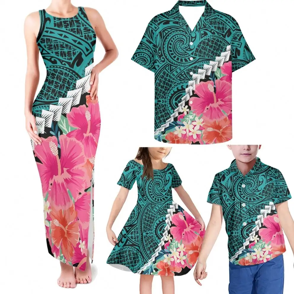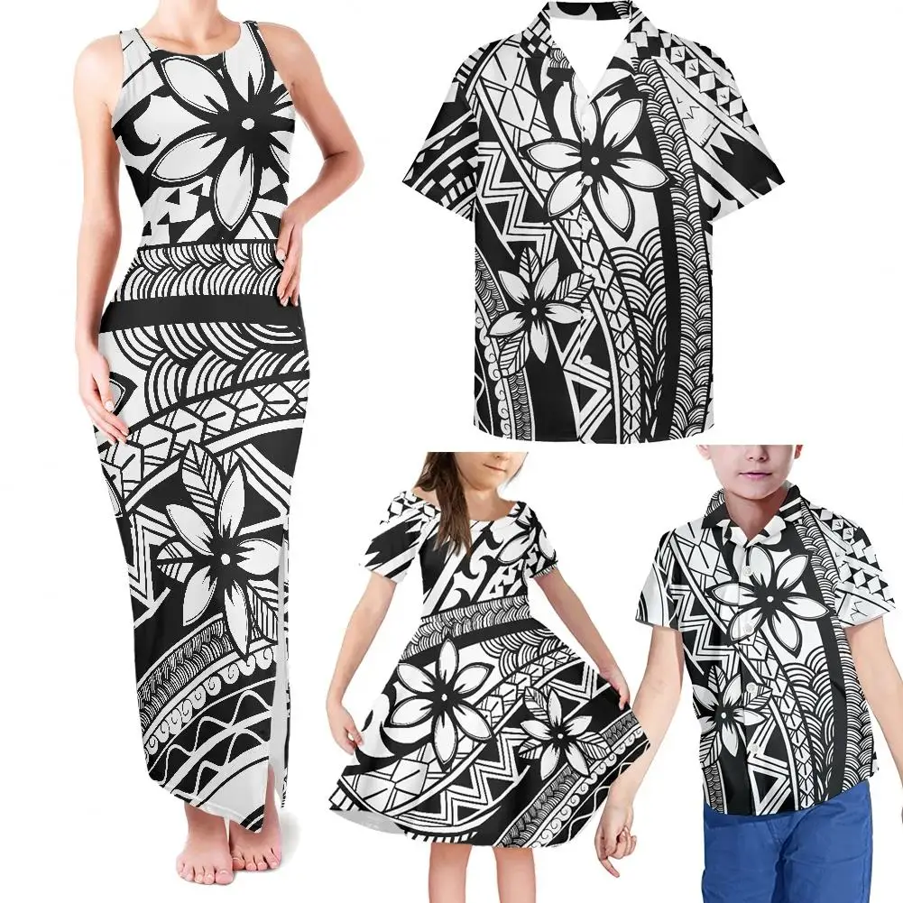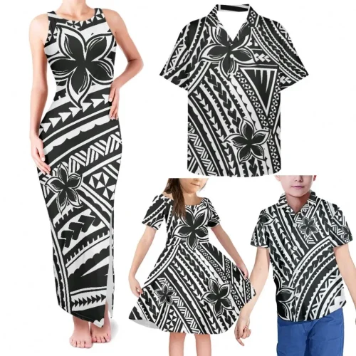 Product Name: Drop Shipping Elegant Long Party Dresses and Kids Dresses for Girls Polynesian Tribal Matching Outfits for Family 4pcs