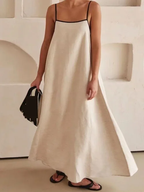 Product Name: Dropshipping Chic Ladies Cozy Cloth Summer Resort Beach Party Sundress Woven Fabric Robe Sleeveless Women Slip Dresses