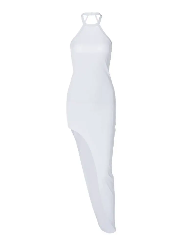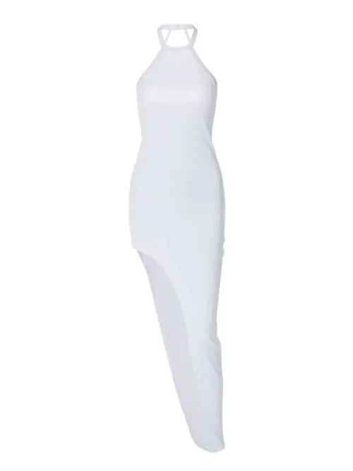 Product Name: Dropshipping Streetwear Chic Feminine Fashion Sexy Halter Classic White Ribbed Irregular Bodycon Casual Dress Women