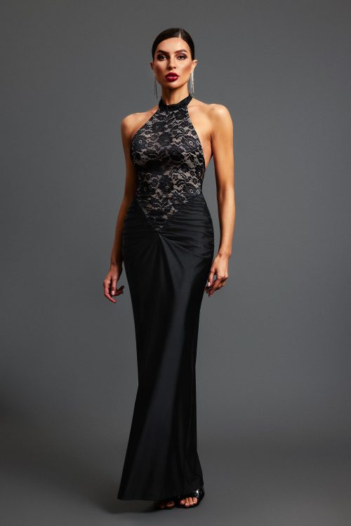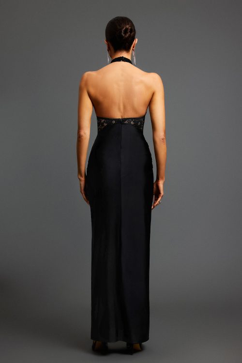 Dye Halter Sleeveless Lace Maxi Dress