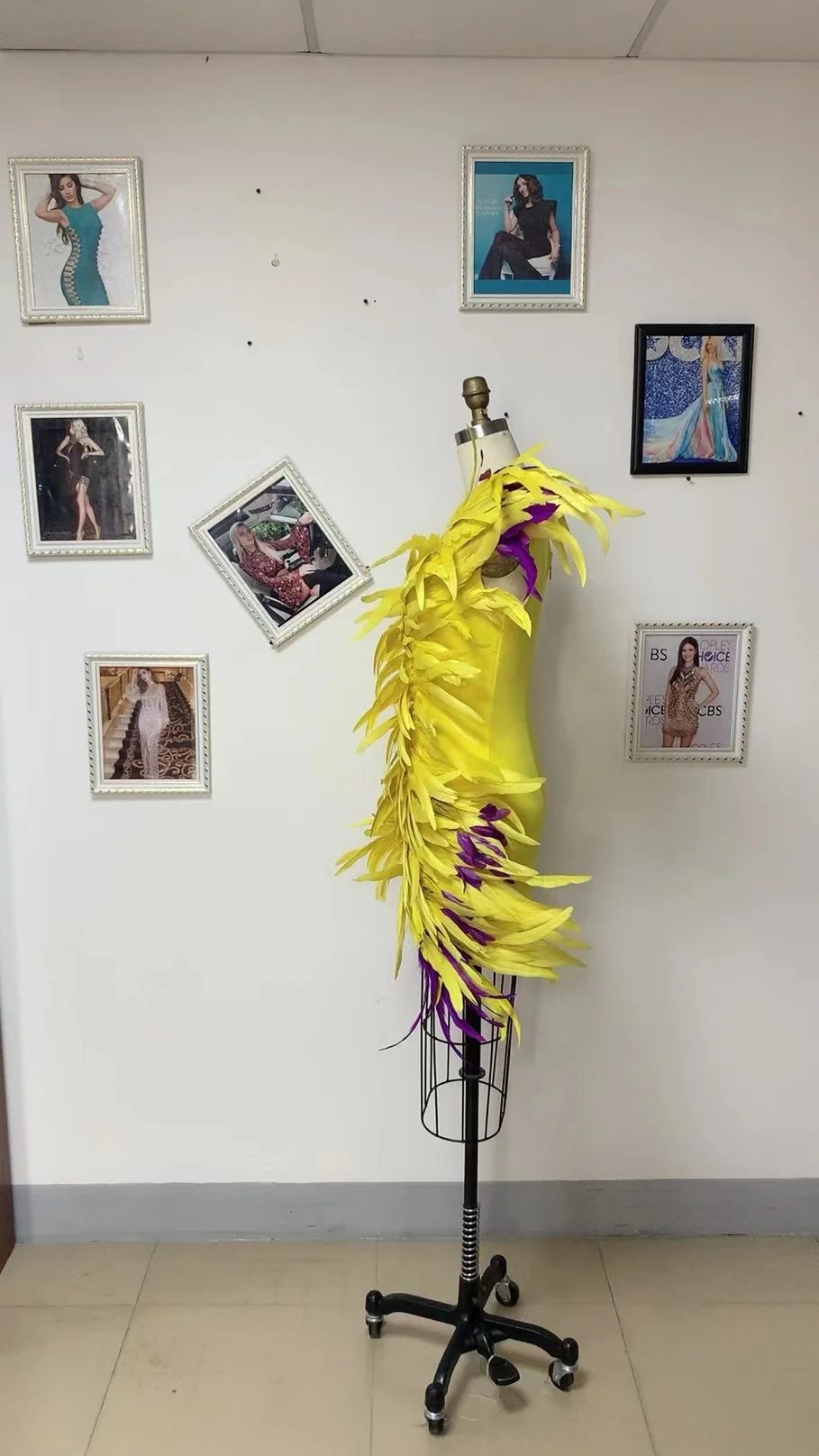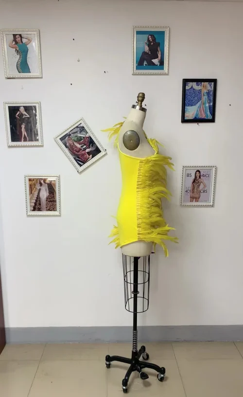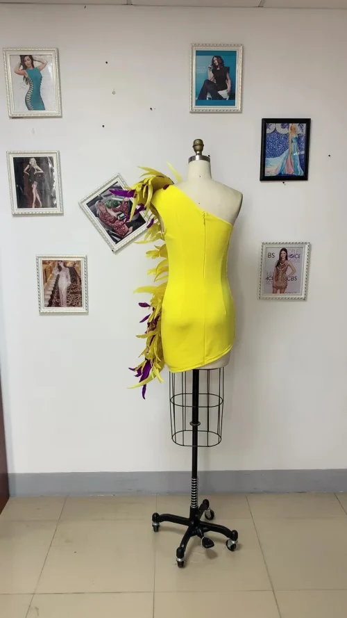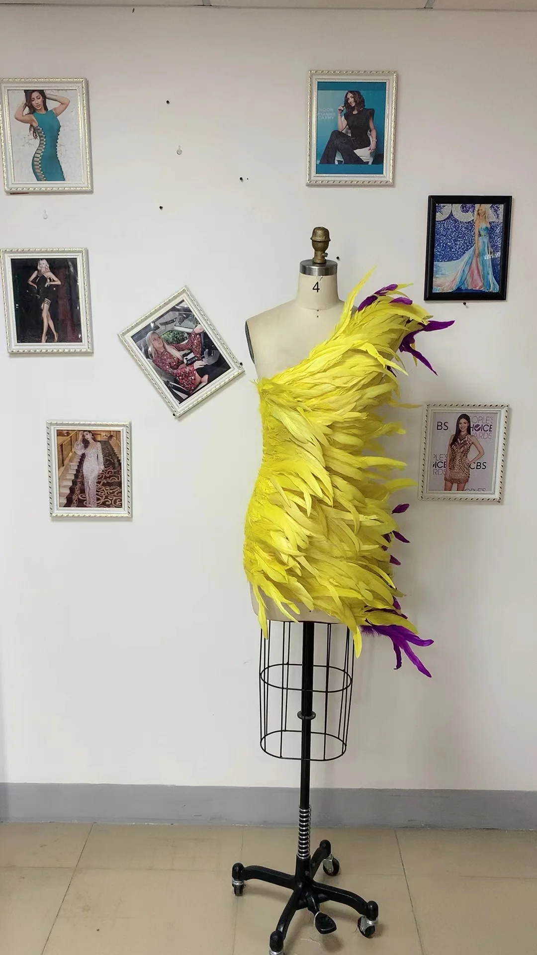 Product Name: ED2168 Sexy Evening Dress Stage & Dance Wear Yellow Real Feather Women Clothing Prom Dresses With Feathers