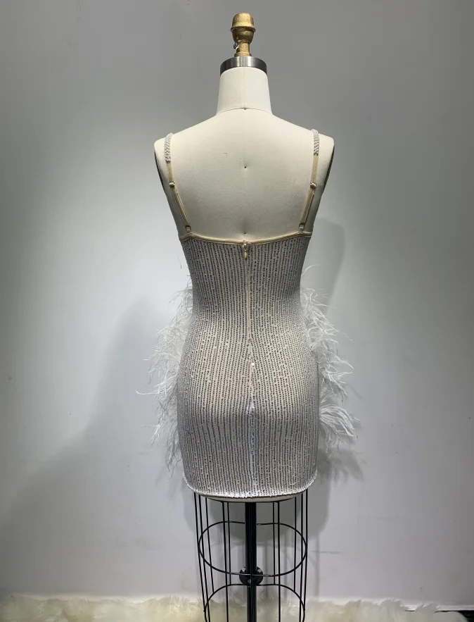 Product Name: ED2245 Women Summer Clothing Sexy Dresses Women Night Low Short Dress for Woman Shiny Handmade Crystal Feather Dresses