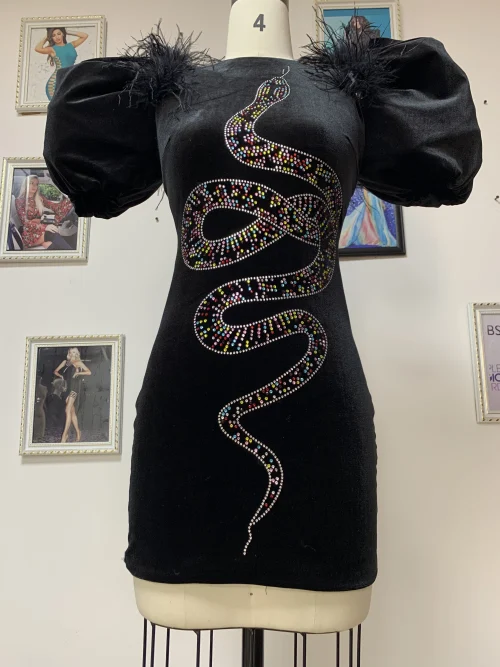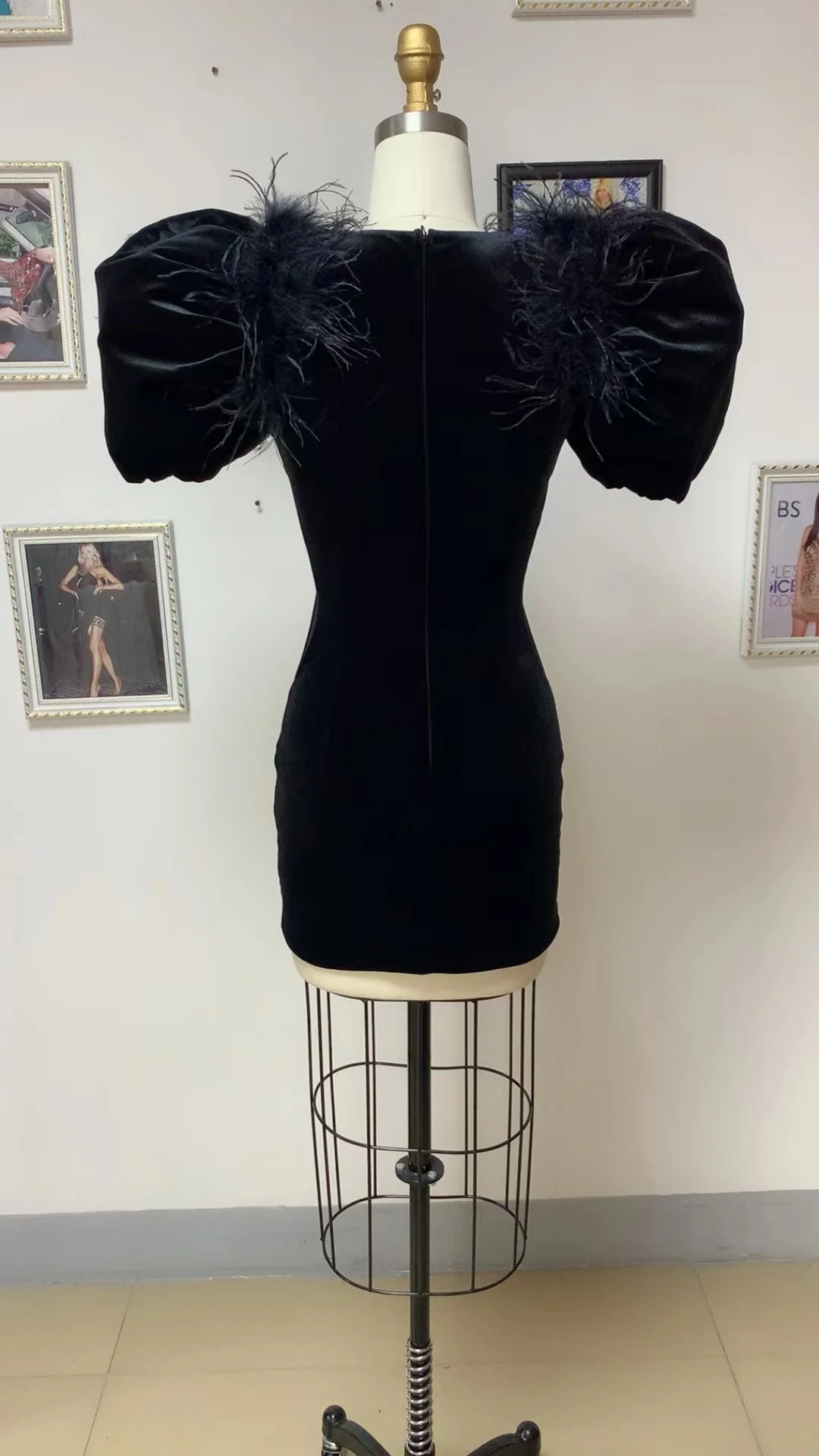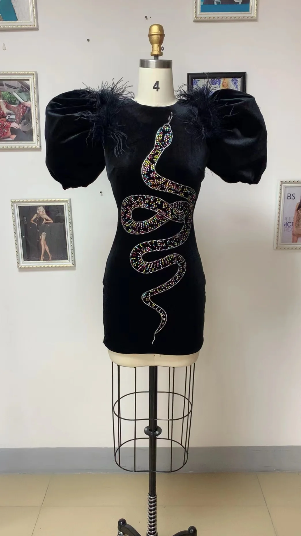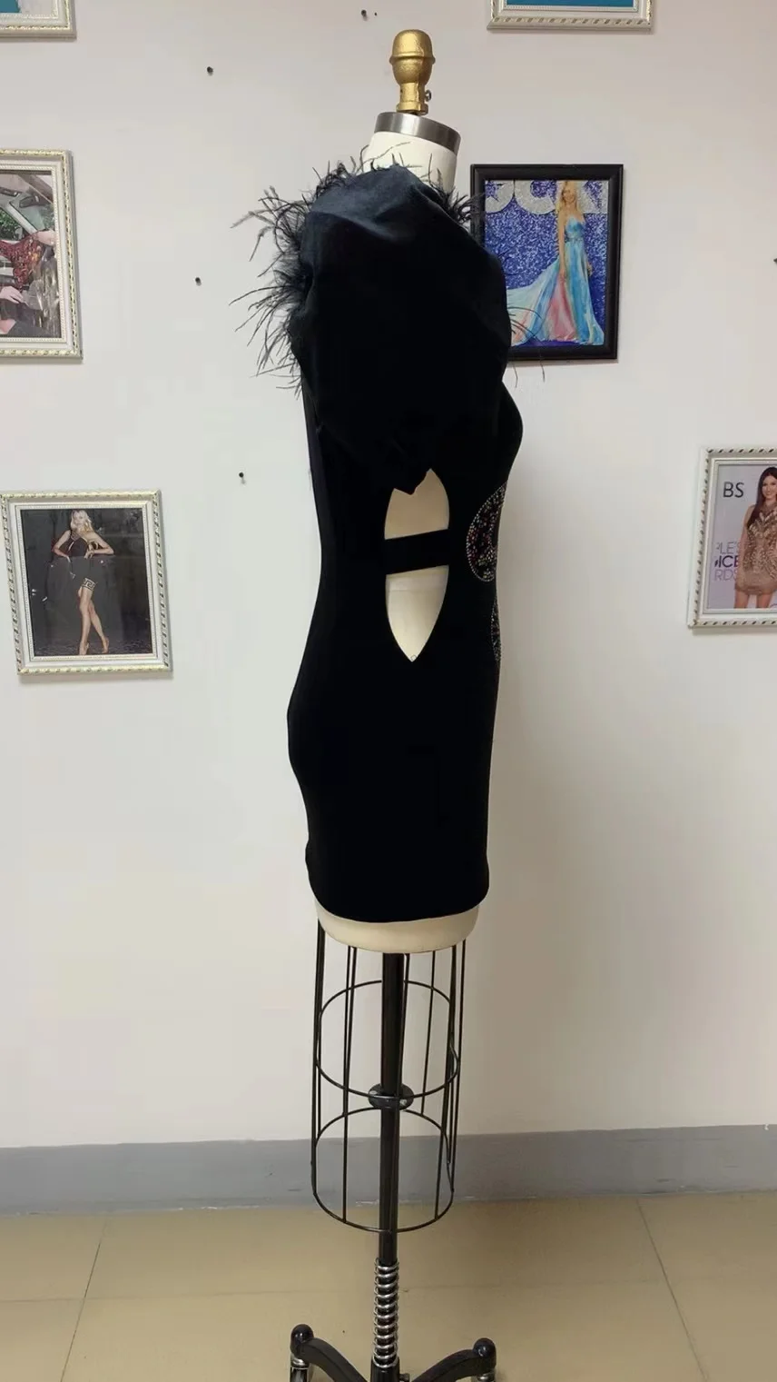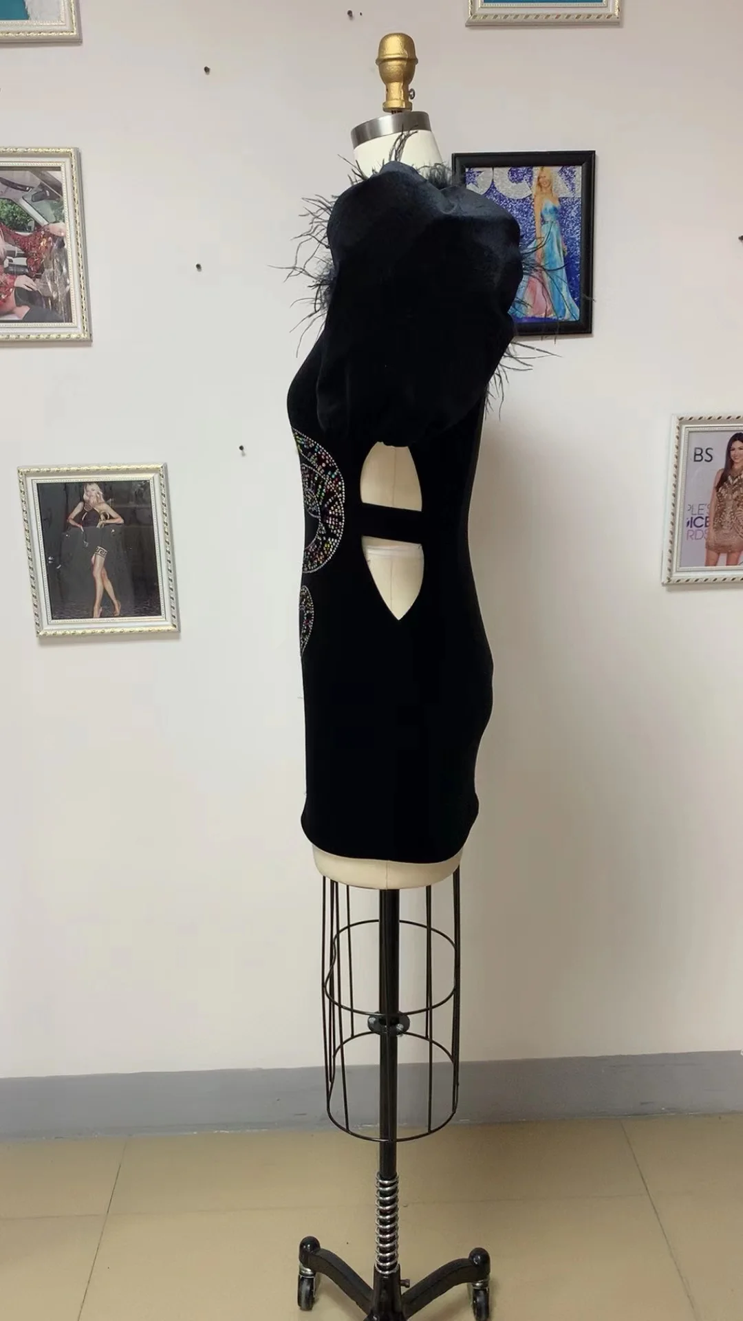 Product Name: ED2367 High Quality Summer Clothes Women Strapless Stylish Sexy Dress Short Sleeve Crystal Dresses With Feather