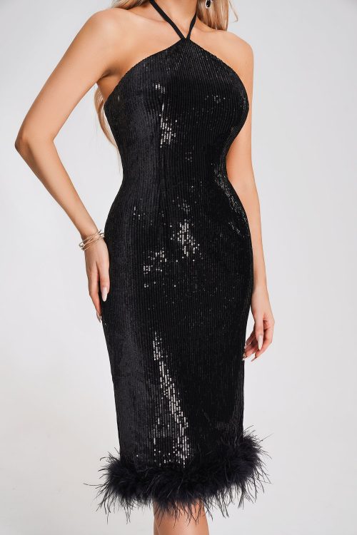 Be the first to review “Eiman Halterneck Sequin Feather Midi Dress” Cancel reply