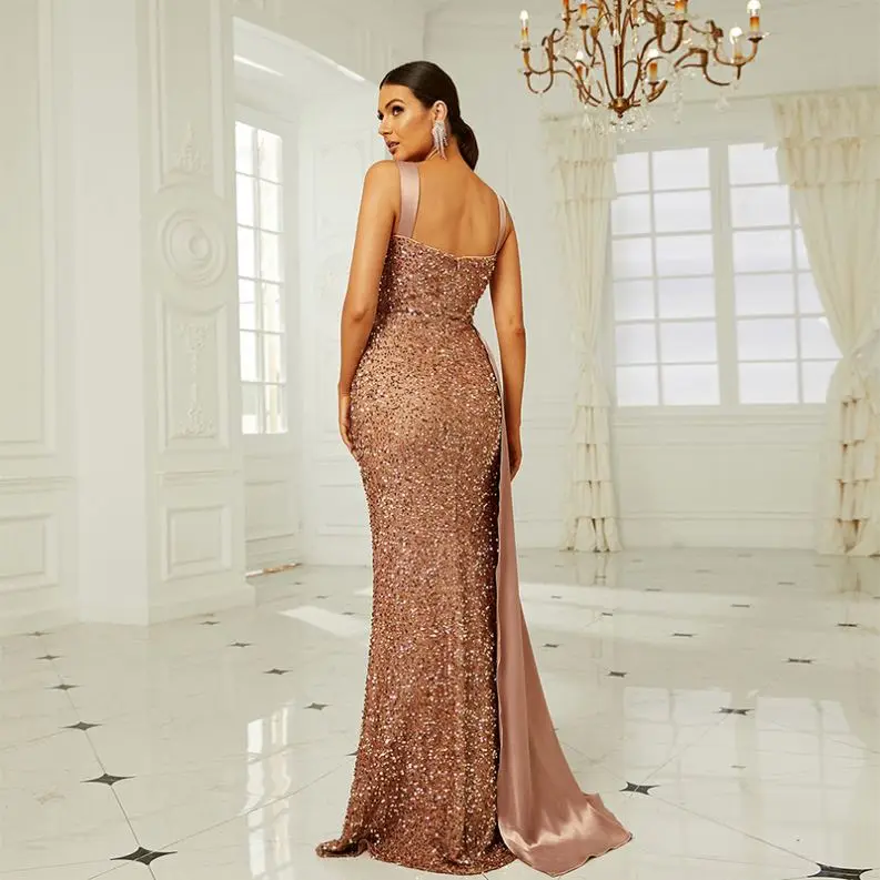 Product Name: EL1514 Sequin Side Split Evening Dresses Women Patchwork Sleeveless Sexy Party Dress High Waist Backless Zip Elegant Long Dress