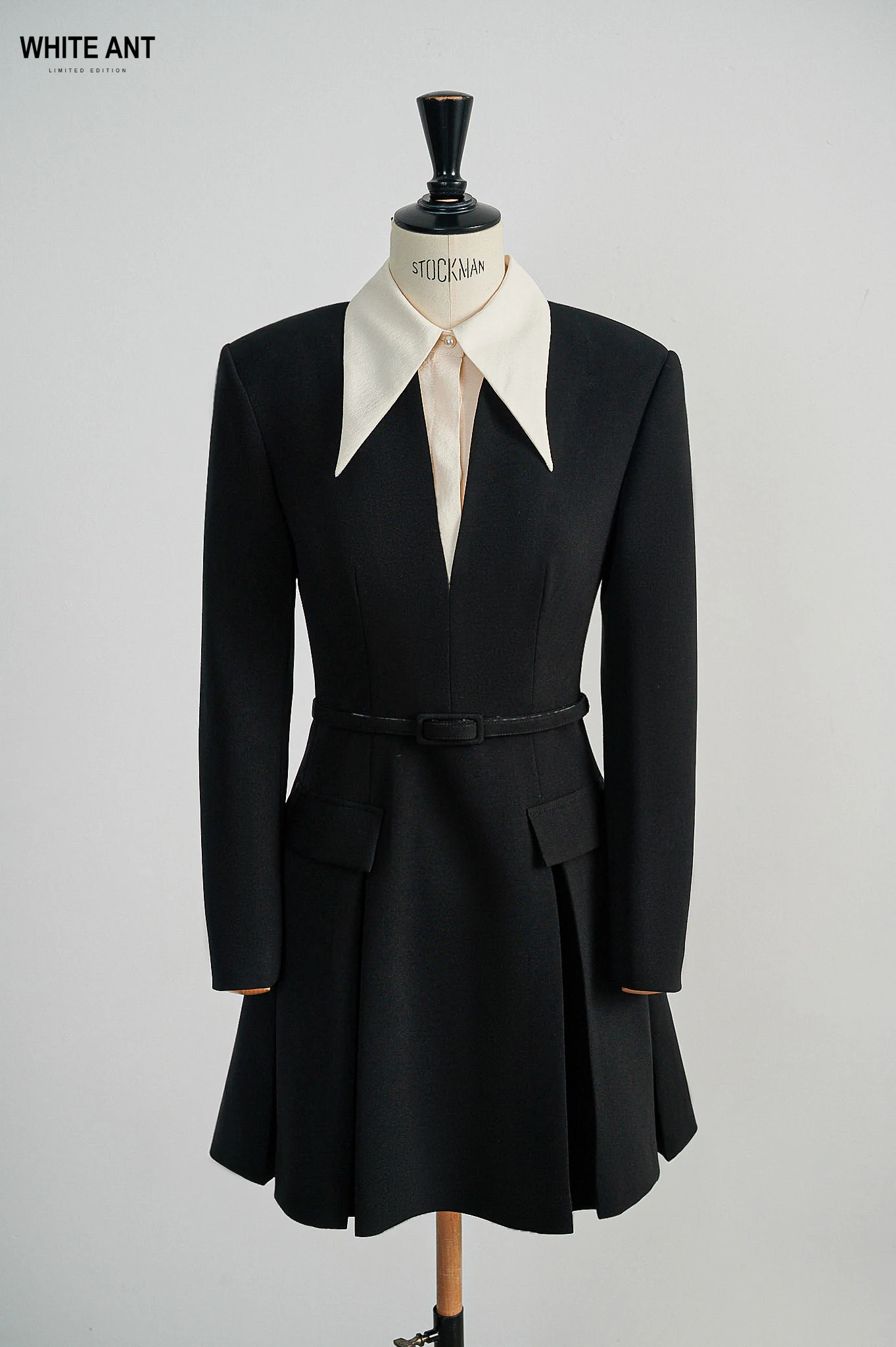 Elegant Black Short Pleated Dress With Collar PHOEBE MINI DRESS Eco-friendly 73%Polyester 17%Rayon 10%Spandex Woman Clothes