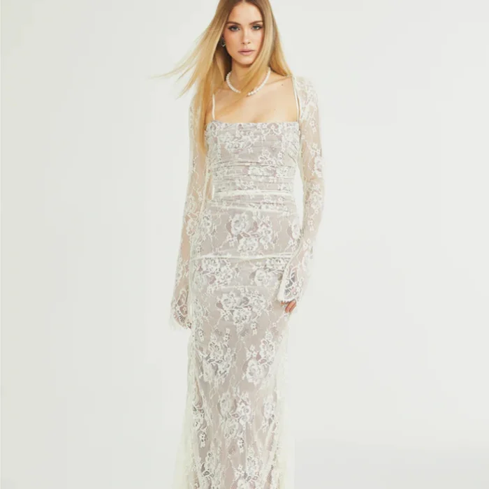 Product Name: Elegant Women’s 2024 Summer White Formal Evening Dress with Lace Decoration Natural Waistline Woven Technique Plain Dyed