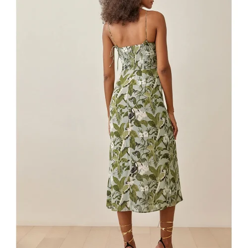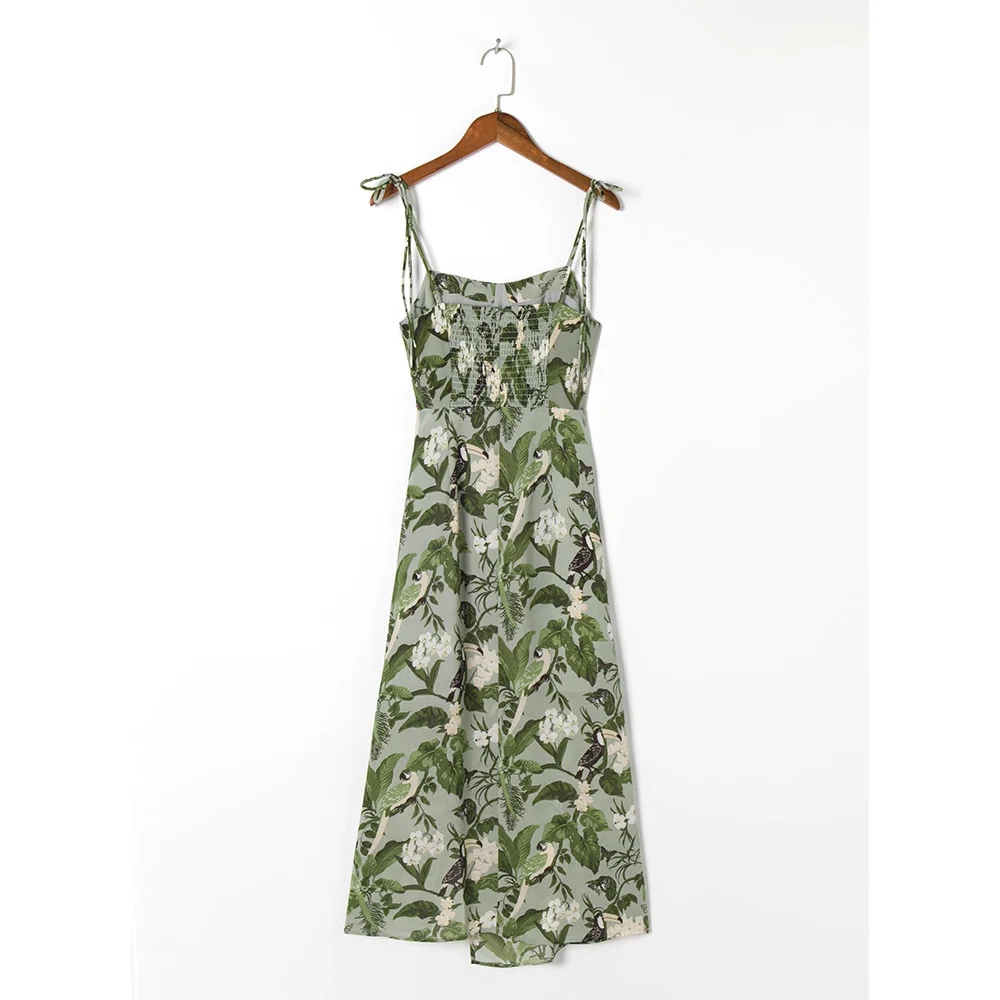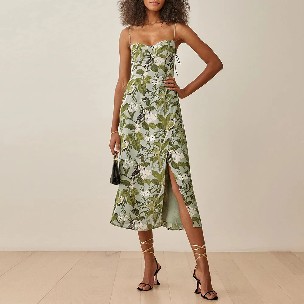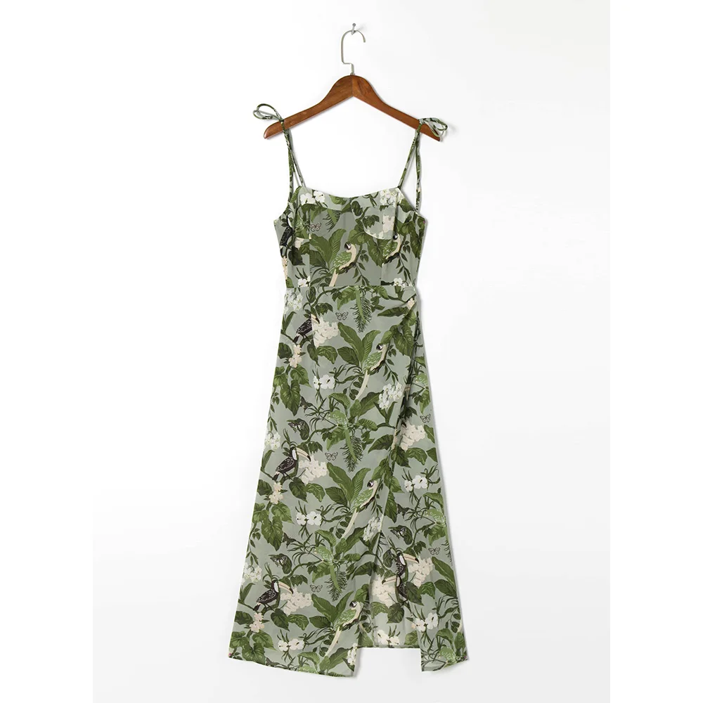 Elegant Women’s Midi Dress Tropical Floral Print Spaghetti Strap Empire Beach Sundress for Casual Parties Vacations Plain Dyed