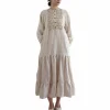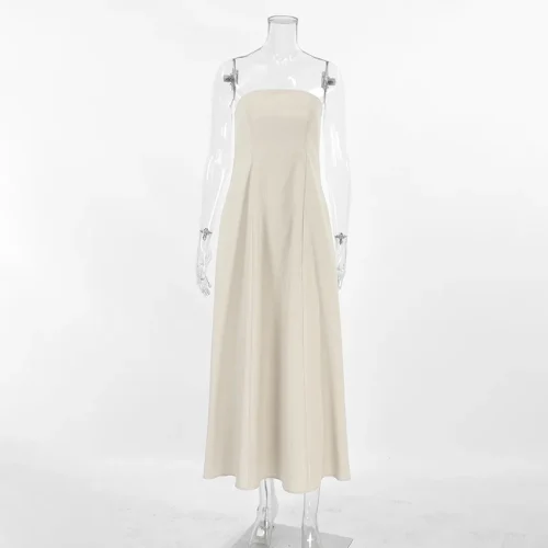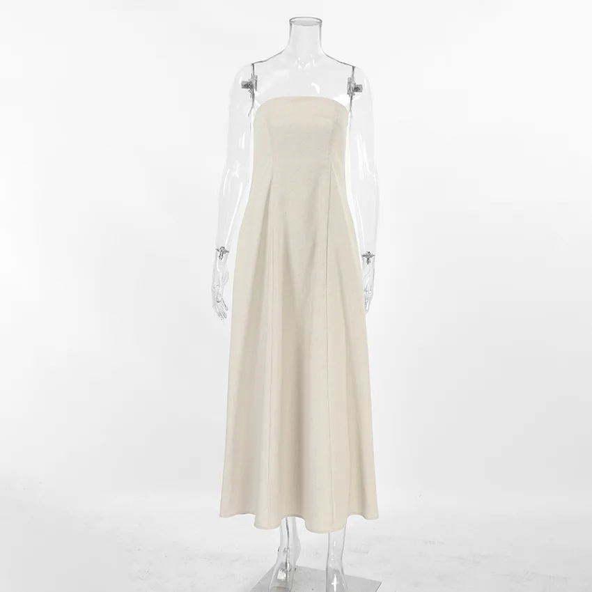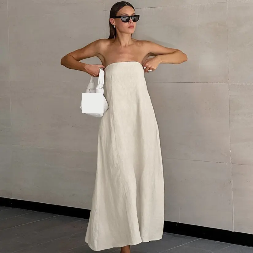 Product Name: Enyami Cozy Holiday Summer Beach Resort New Style Khaki Cotton Linen Strapless Loose Long Dress Women With Pockets