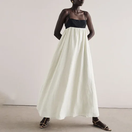 Product Name: Enyami Summer Boheme Resort Vacation Chic 100% Cotton Sexy Square Neck Sleeveless Linen Texture Casual Slip Dresses Women