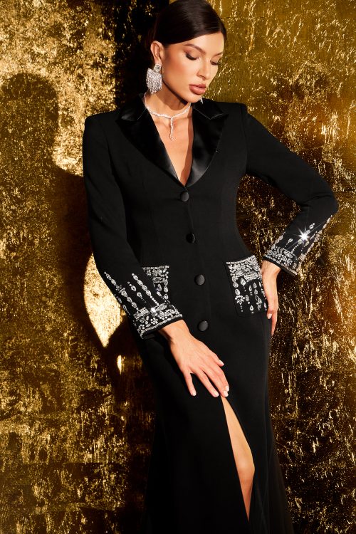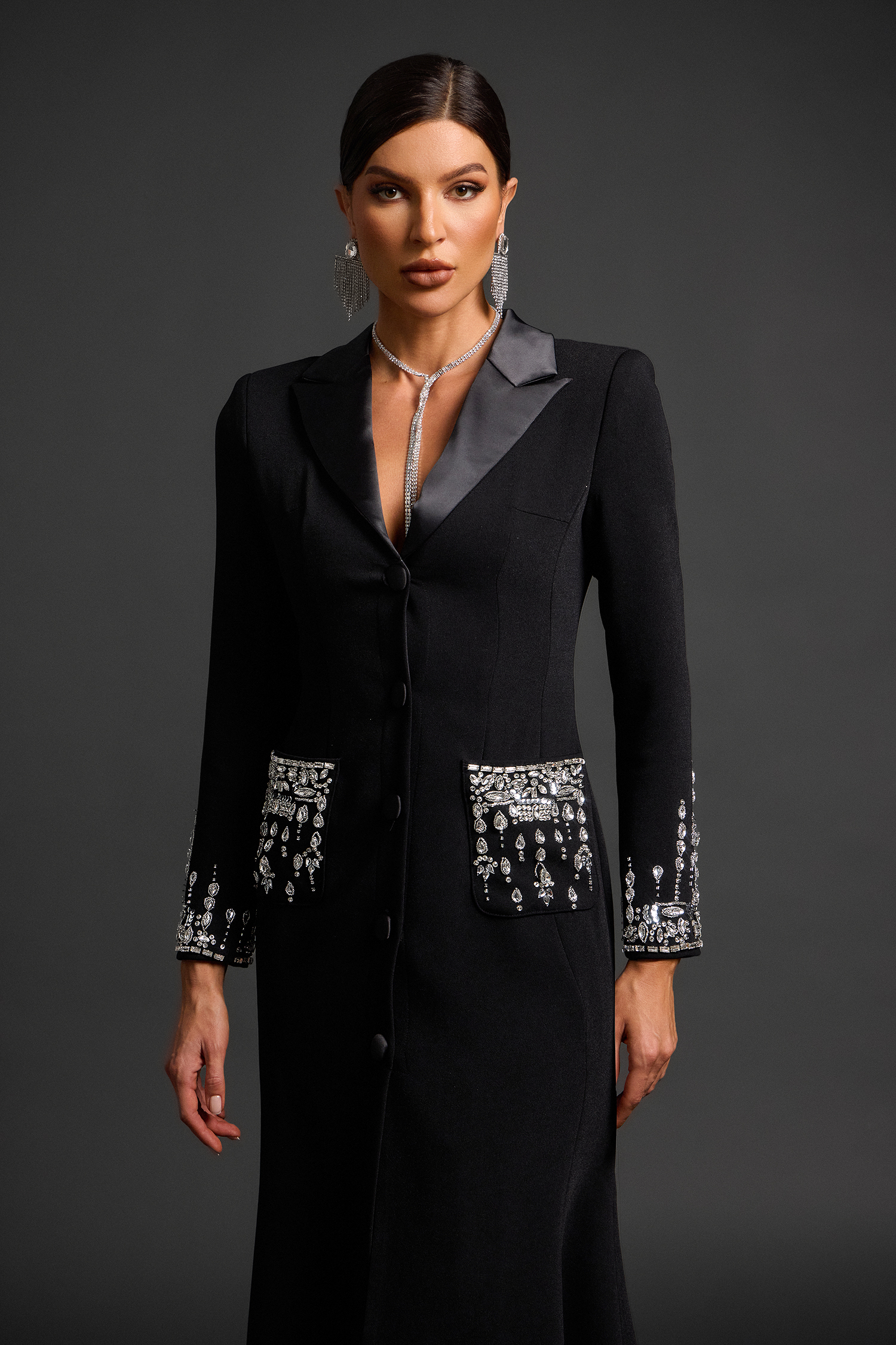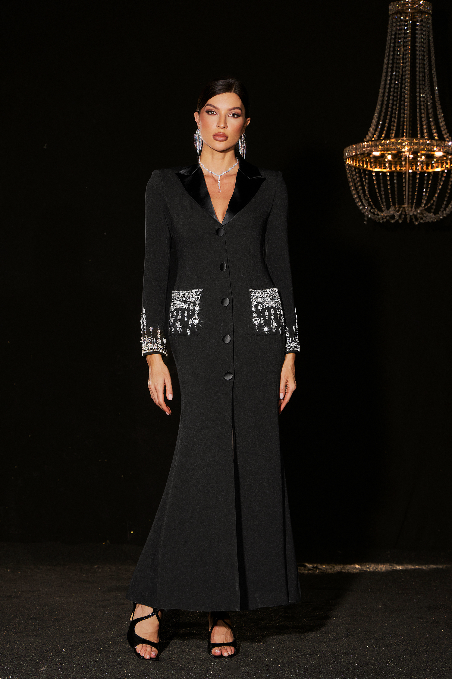 Eren Deep-V Diamond Suit High Slit Maxi Dress