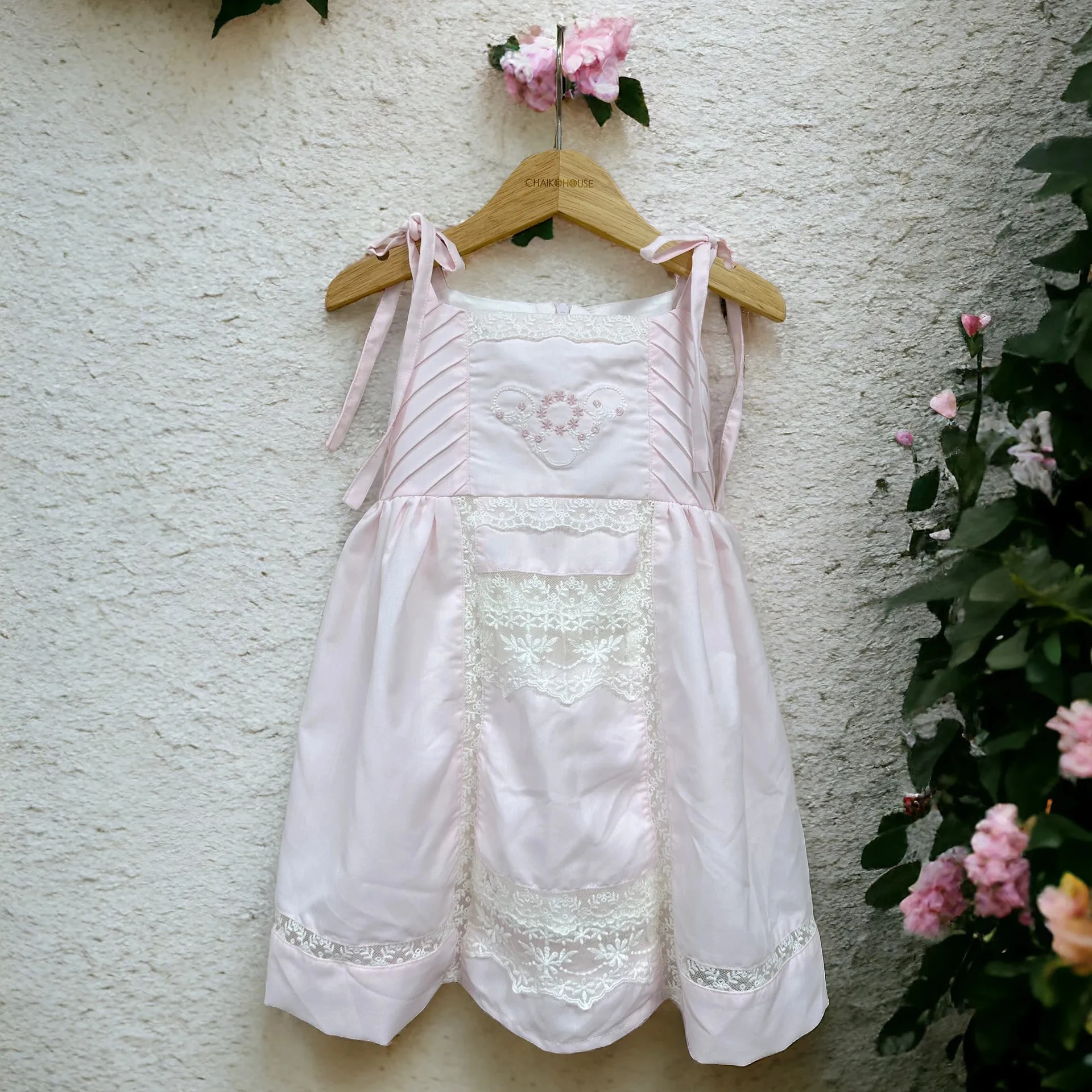Esere Girls’ Pink Cotton Sleeveless Machine Embroidered Lace Dress Great for Summer Parties Birthday Spring & Autumn-Ready Ship!