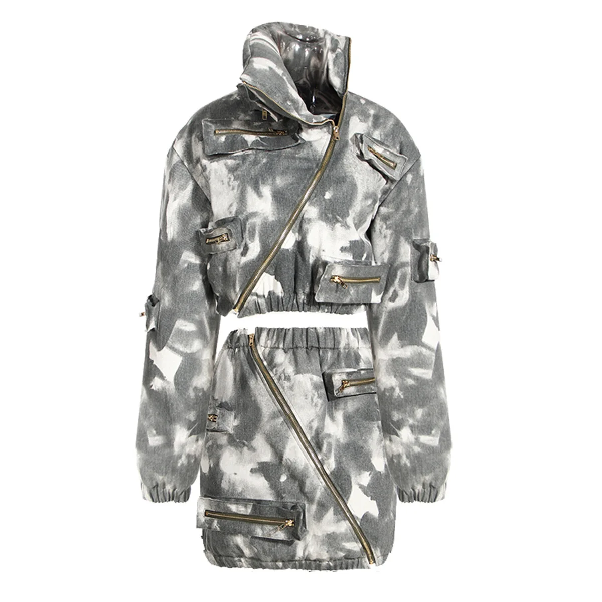 Product Name: Fall Winter Sexy Casual Zipper 2 Piece Short Crop Cardigan Puffer Coat Jacket With Mini Cargo Skirts Sets Women 2 Piece Outfits