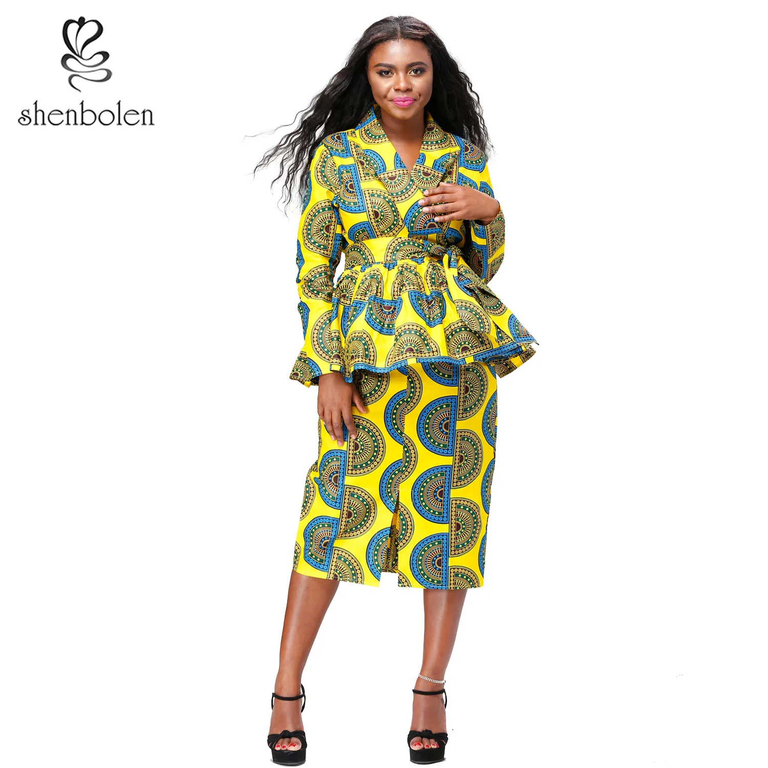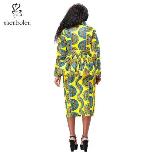 Product Name: Fashion Breathable Lady V-neck Work Straight Cotton Office Dress Elegant Long Sleeve Female African Women Career Dresses
