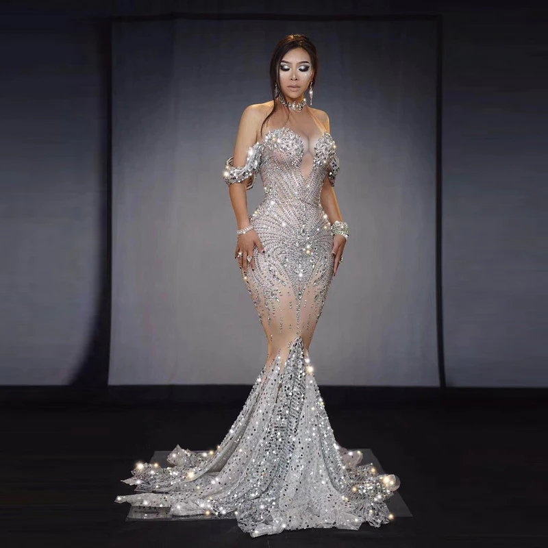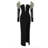 Product Name: Fashion Design Diamonds Embellished Low Cut Deep V Sexy Dresses Accentuate Chest&hip Sexy Nude Long Dress Luxury Evening Dresses