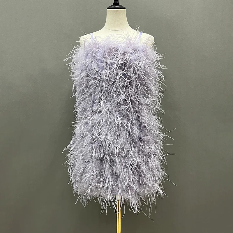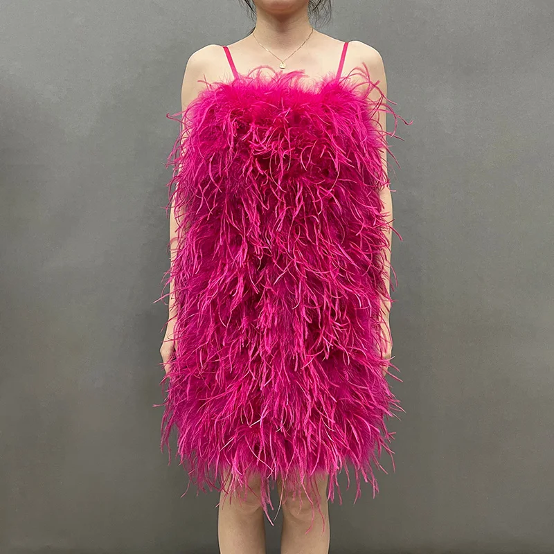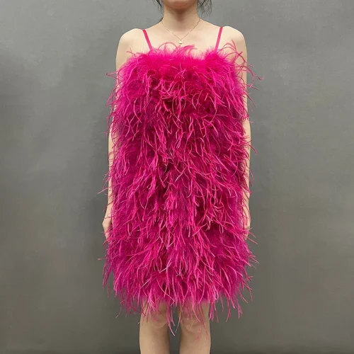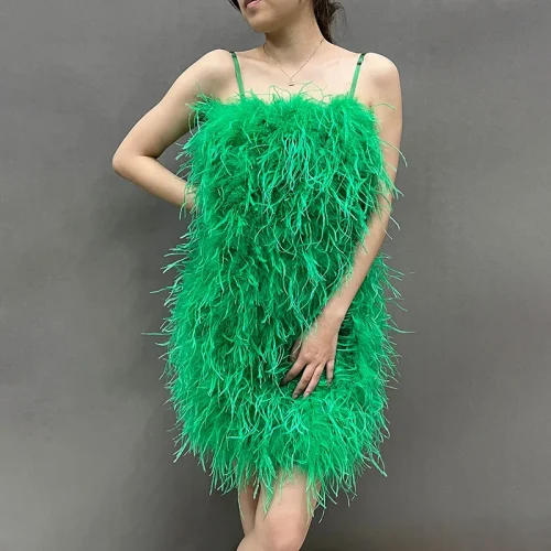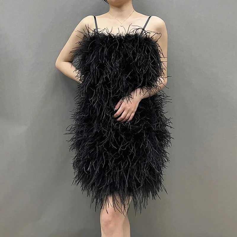 Fashion Evening Fluffy Feather Dress Party Women Sexy Bodycon Ostrich Feathers Dress