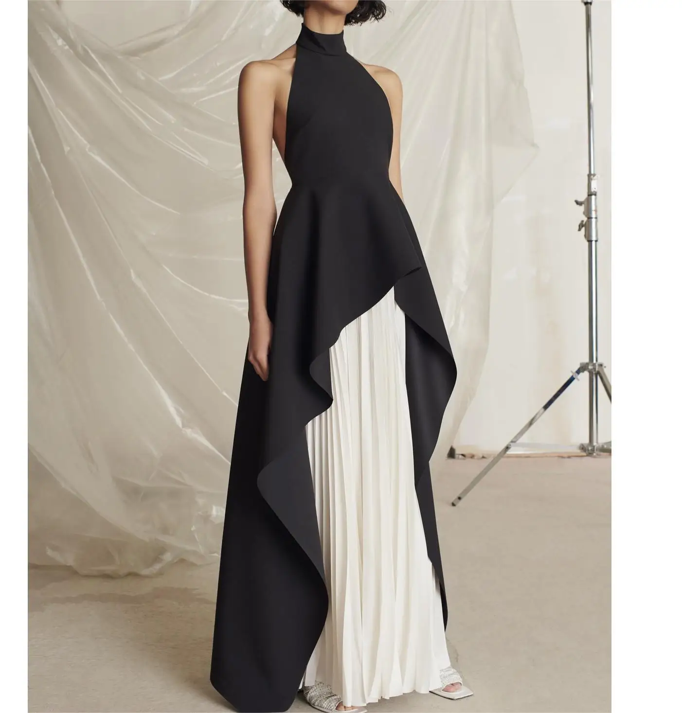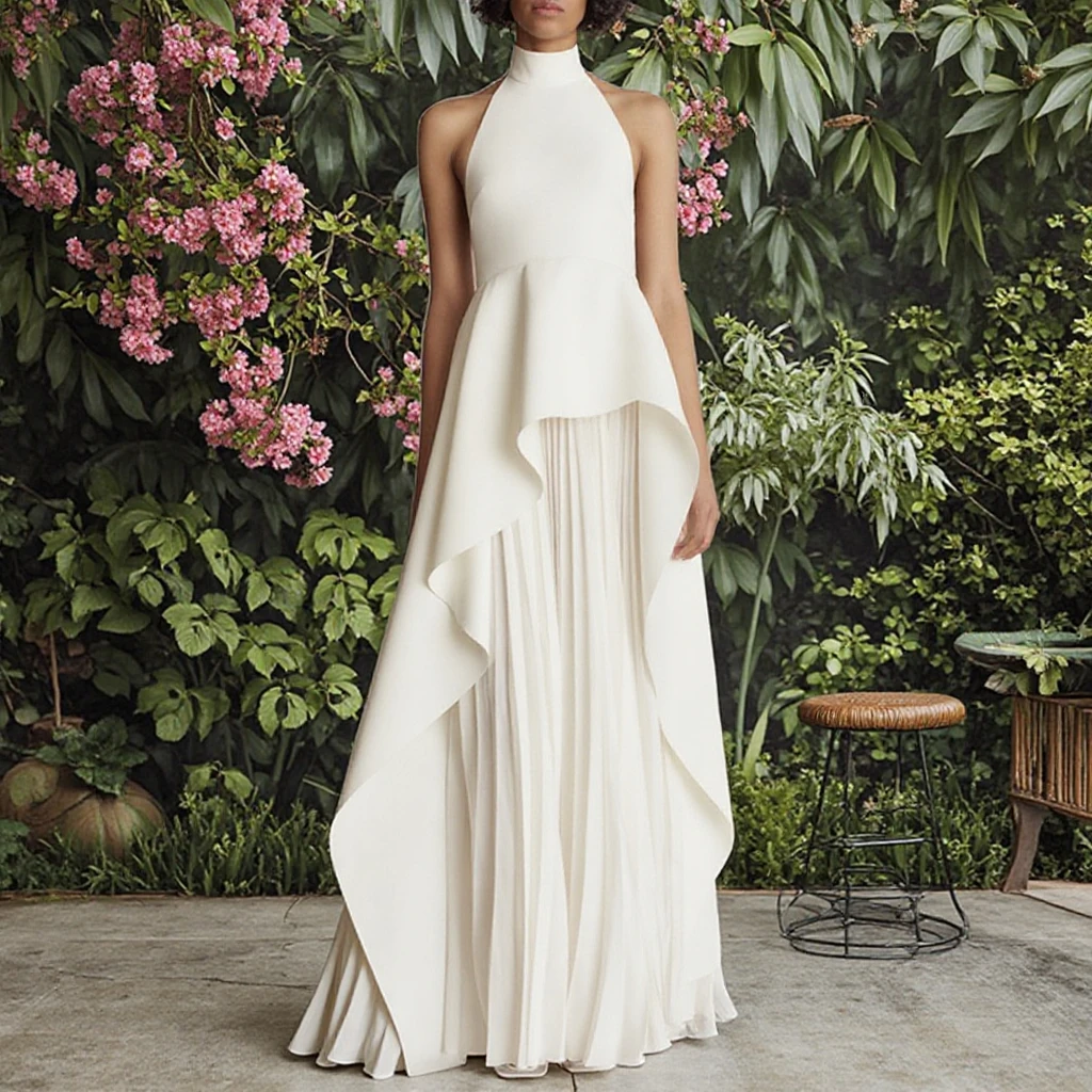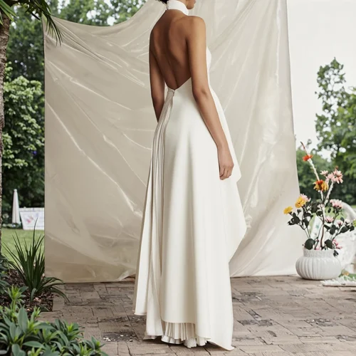 Formal Fashion High End Style Ladies Sleeveless Pleated Women Backless Sexy Party Dress