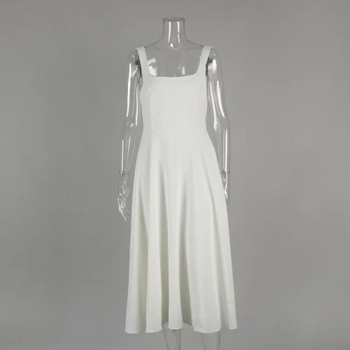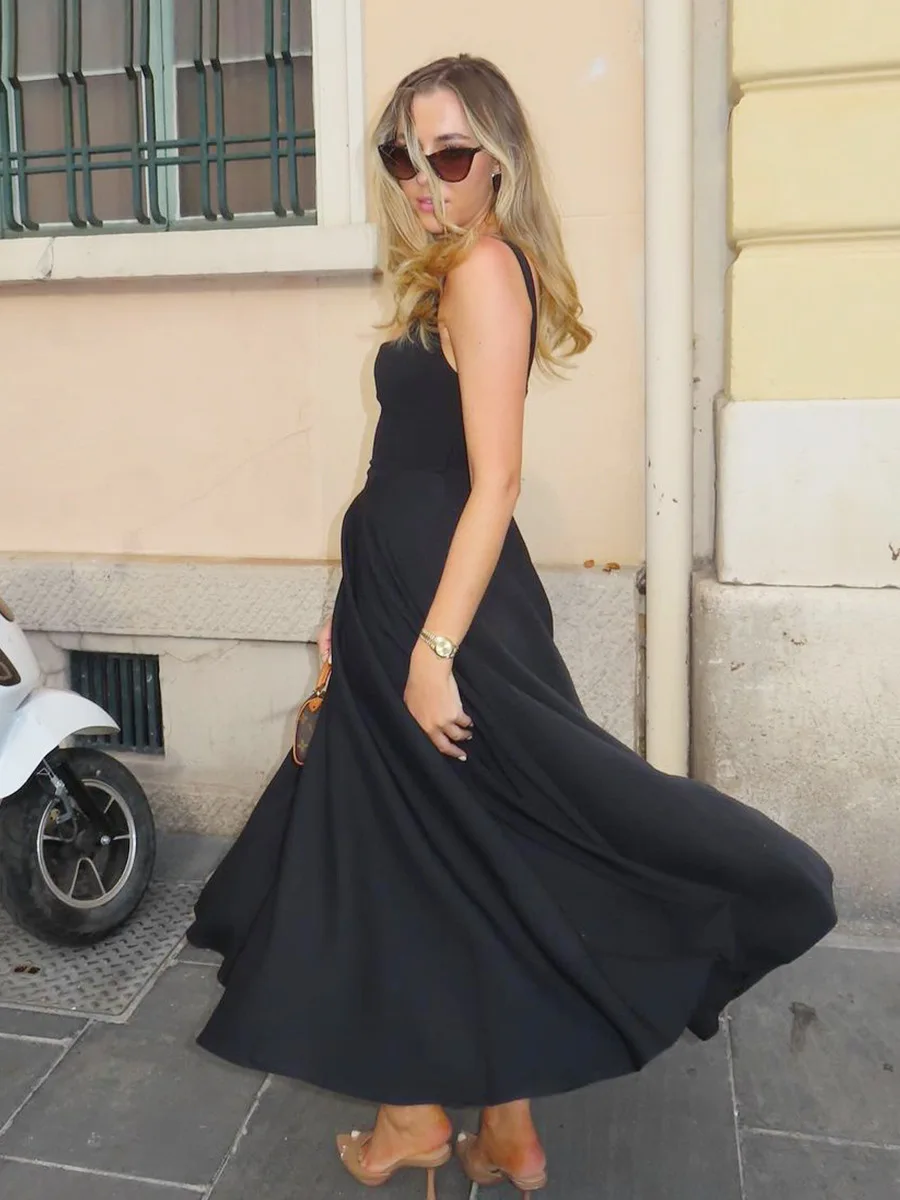 Product Name: French square Neck Slim Fit Long Dress for European and American 2025 Summer Sleeveless Camisole Dress for Women