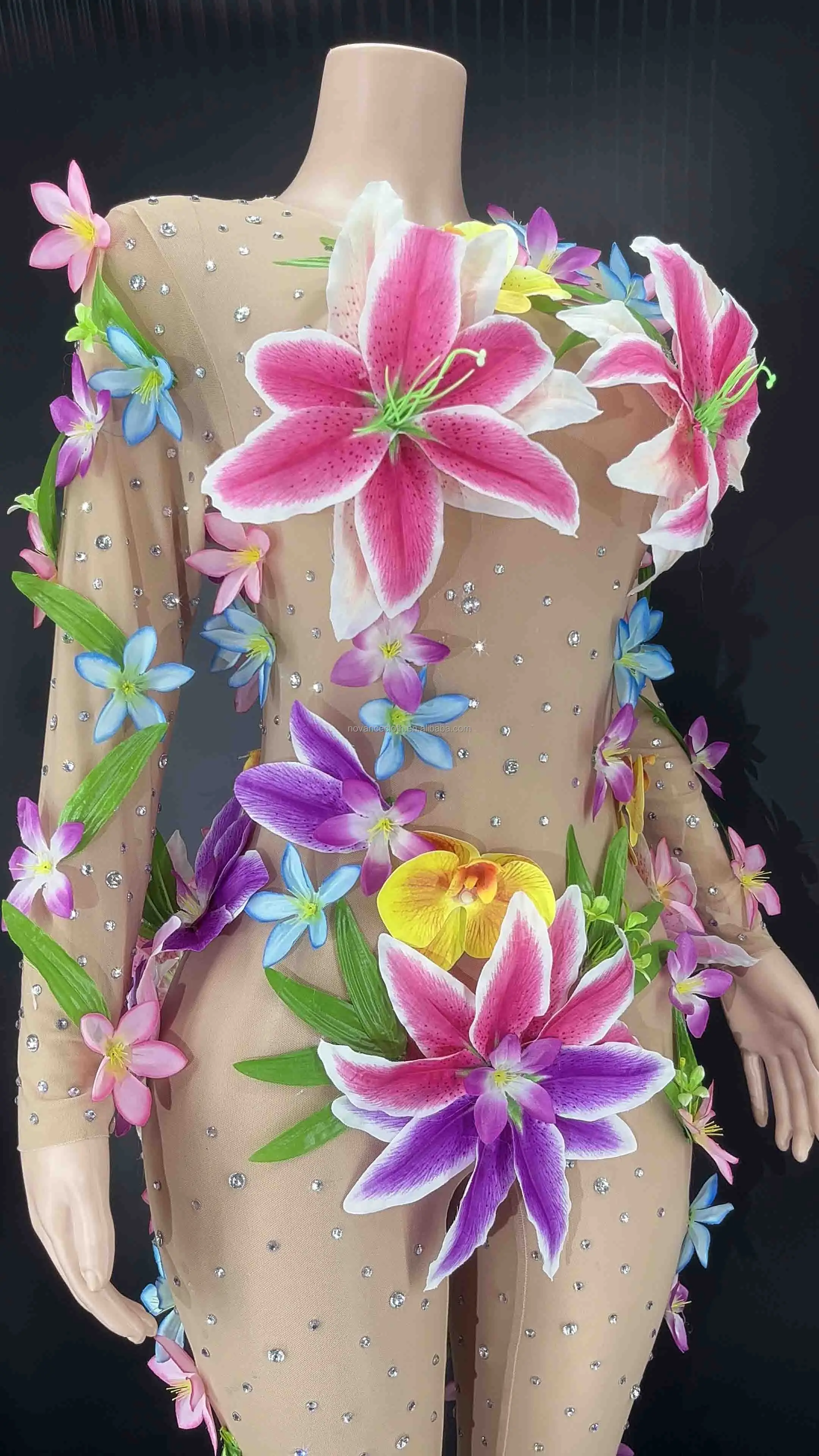 Product Name: Garments Stocks Floral Fabric Diamond Mesh See Through Jumpsuit Beach Dress Elegant Casual Dress Vestidos Largos De Fiesta 2022
