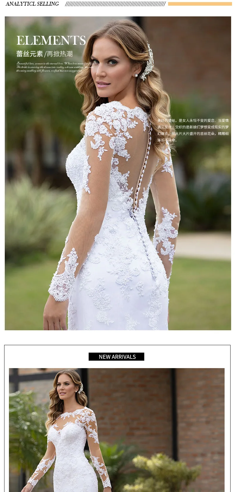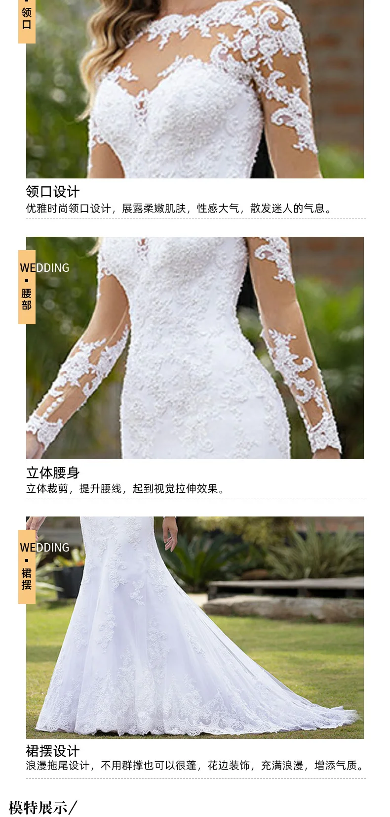 Product Name: Guangzhou Auyan 2024 Long Sleeve Lace Bridal Gown Five Stars Review Wedding Dress With Detachable Train