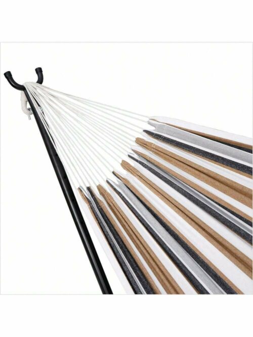Features:[dduurraabble]- The hammock can bear 200kg(441lbs), it is dduurraabble enough to use.[Set-up Easily]- It is easy to setup the hammock by yourdelf at home.[Relax]- Reliable and helpful company for adults, kids and your family whenever you want to relax.[Reliable]- This soft, breathable and mildew-resistant Oxfordd cloth lasts for a long lifetime. DifferENTt holes on the iron frame are suitable for differENTt weightsSpecifications:Product size: 291×106.5x95cm(112.4”x41.9”x37.4”)G.W.: 28.4lbsN.W.: 24.9lbsColor: KhakiMaterial: Oxfordd cloth, MetalPackage Included:1 x Hammock1 x Stand