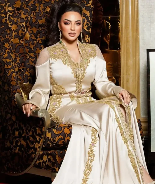 Product Name: Handmade Traditional Moroccan Caftan in Light Brown for Arab Women-Muslim Clothing Accessory