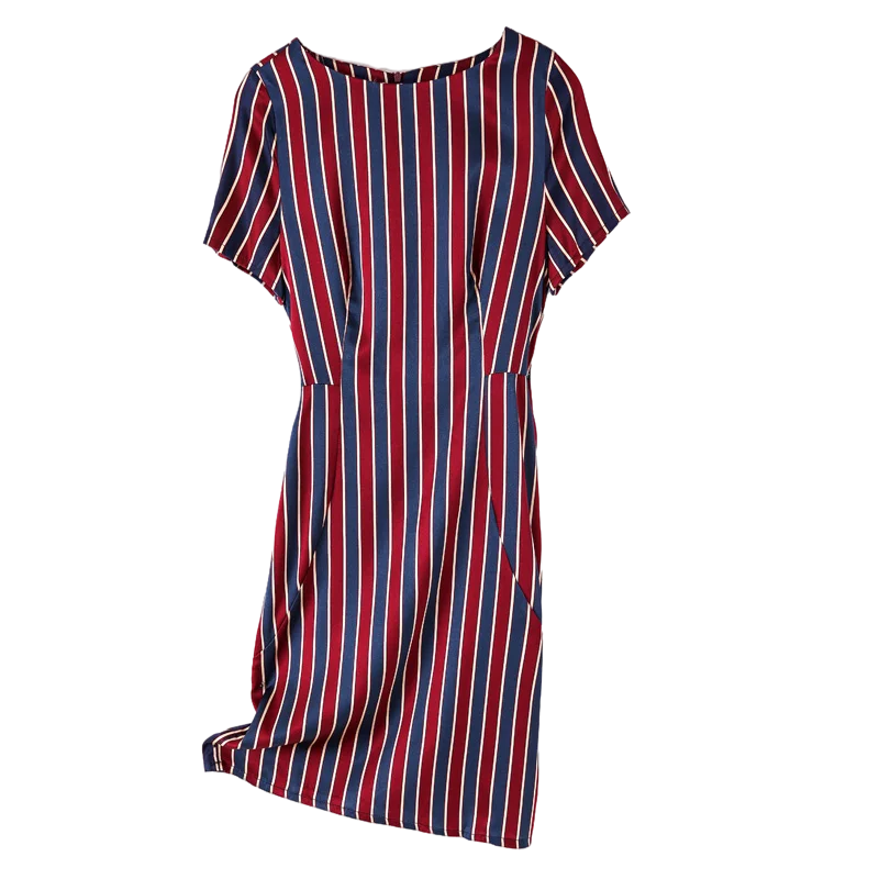 Product Name: Hangzhou Silk Dress for Petite Ladies Sleek Design with round Neck Stripes and Elegant Floral Pattern