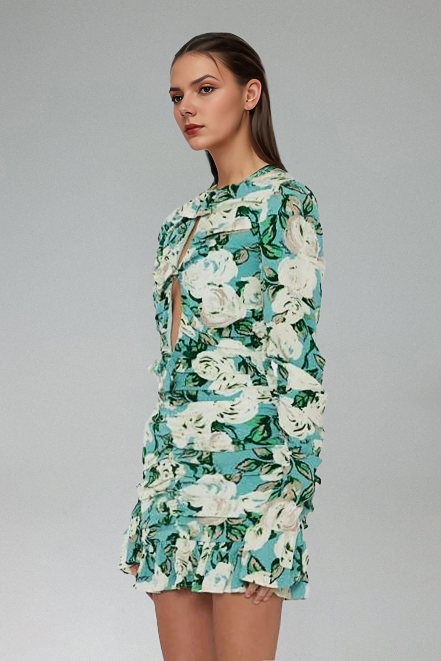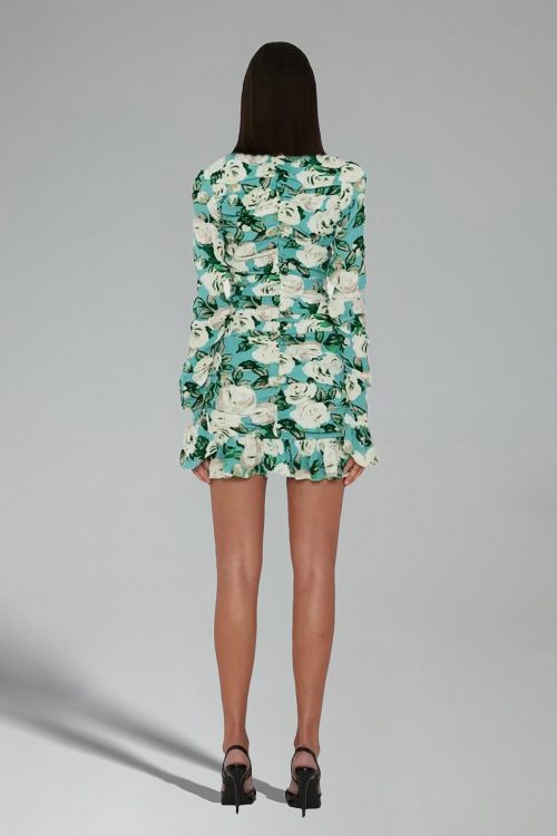 Hena Flower Print Cut Out Mini Dress – Green