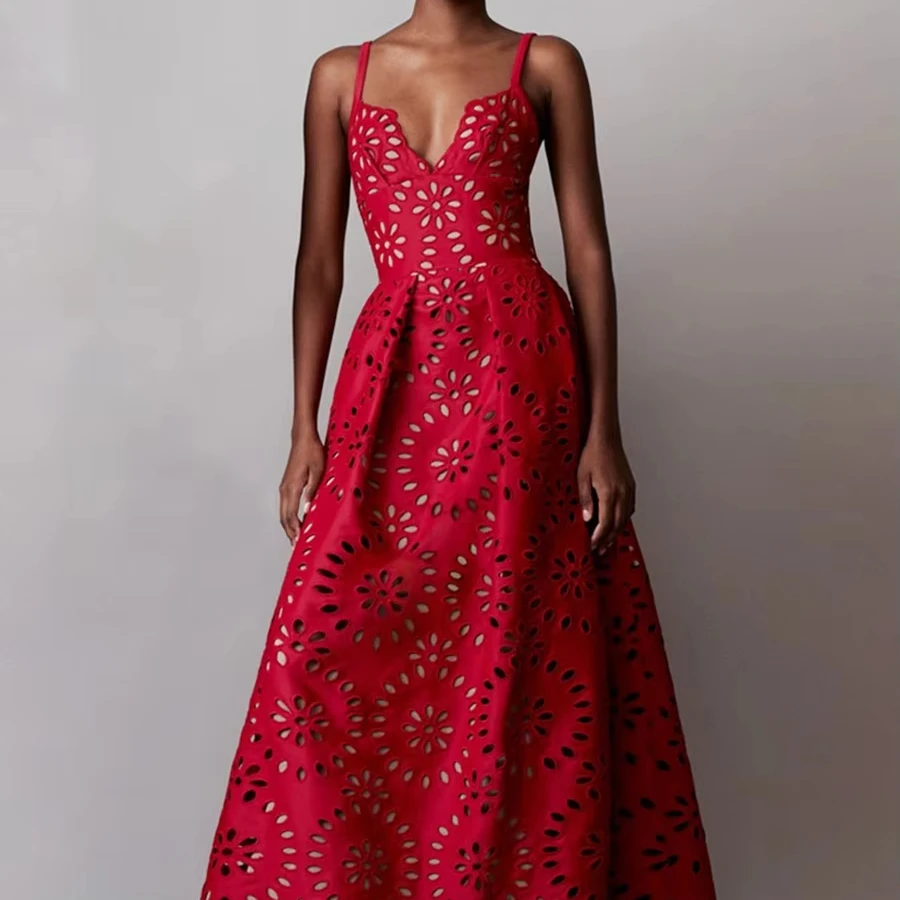 Product Name: High Quality Hollow Hemline Women Dress Elegant Dresses Printed Casual Sexy Dresses High Waist