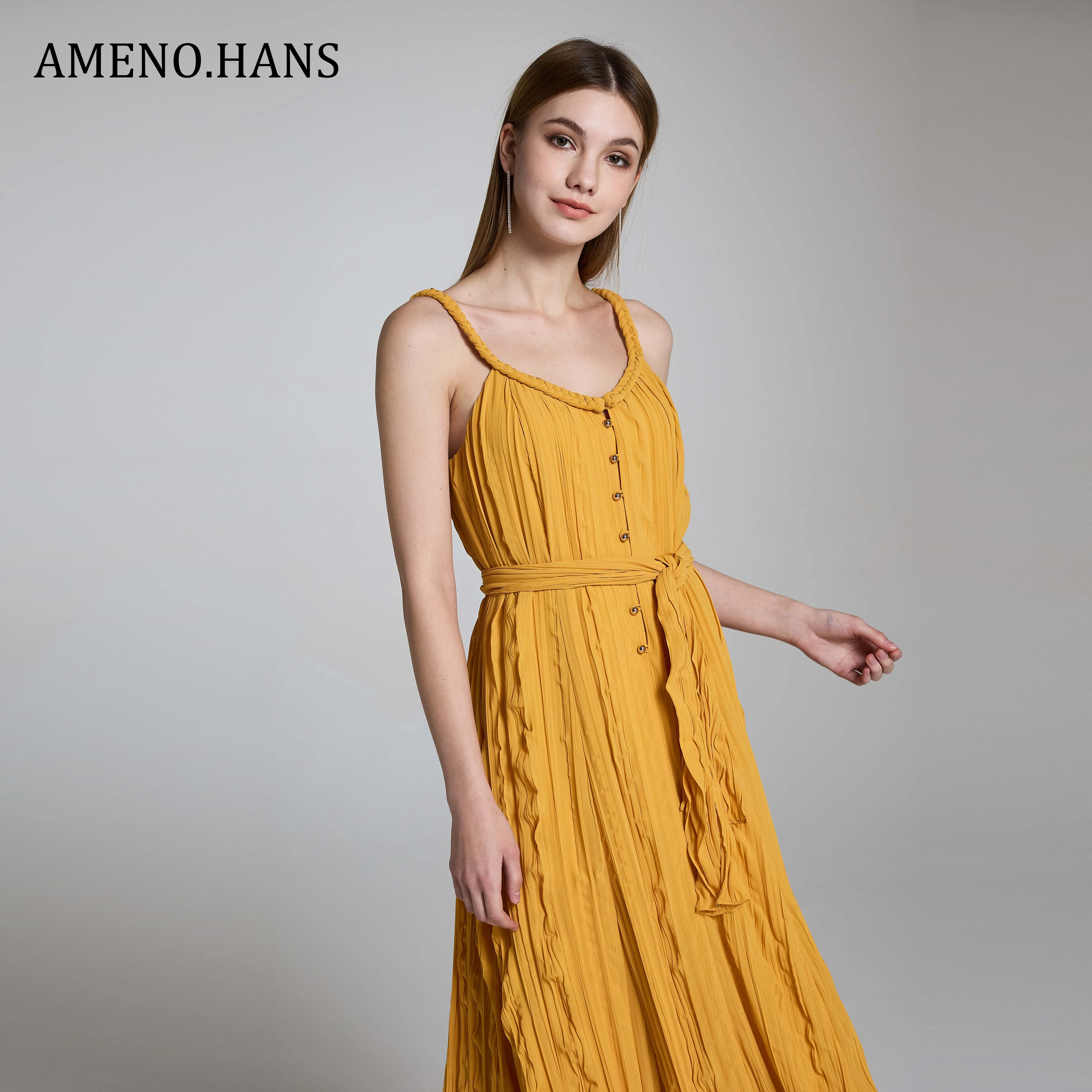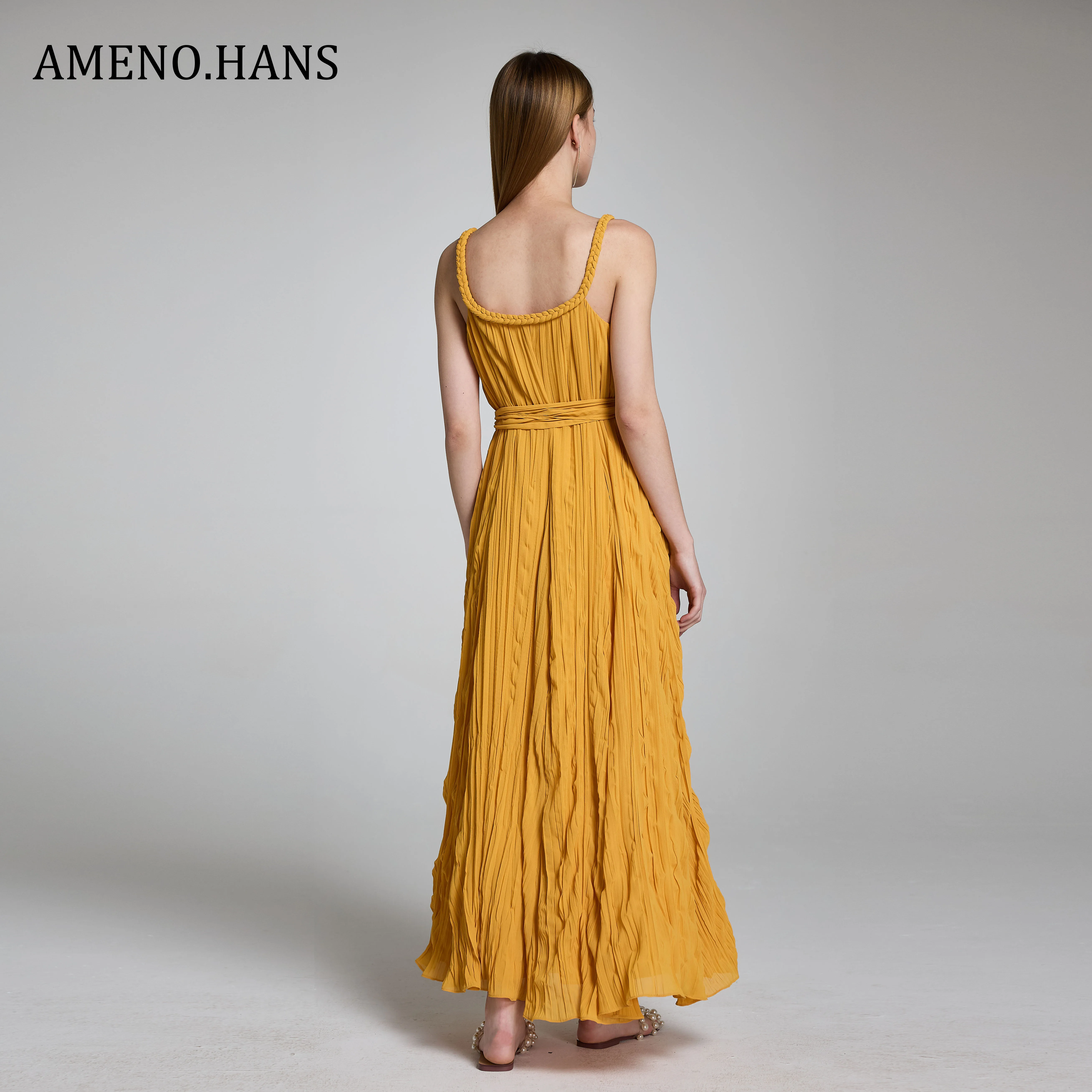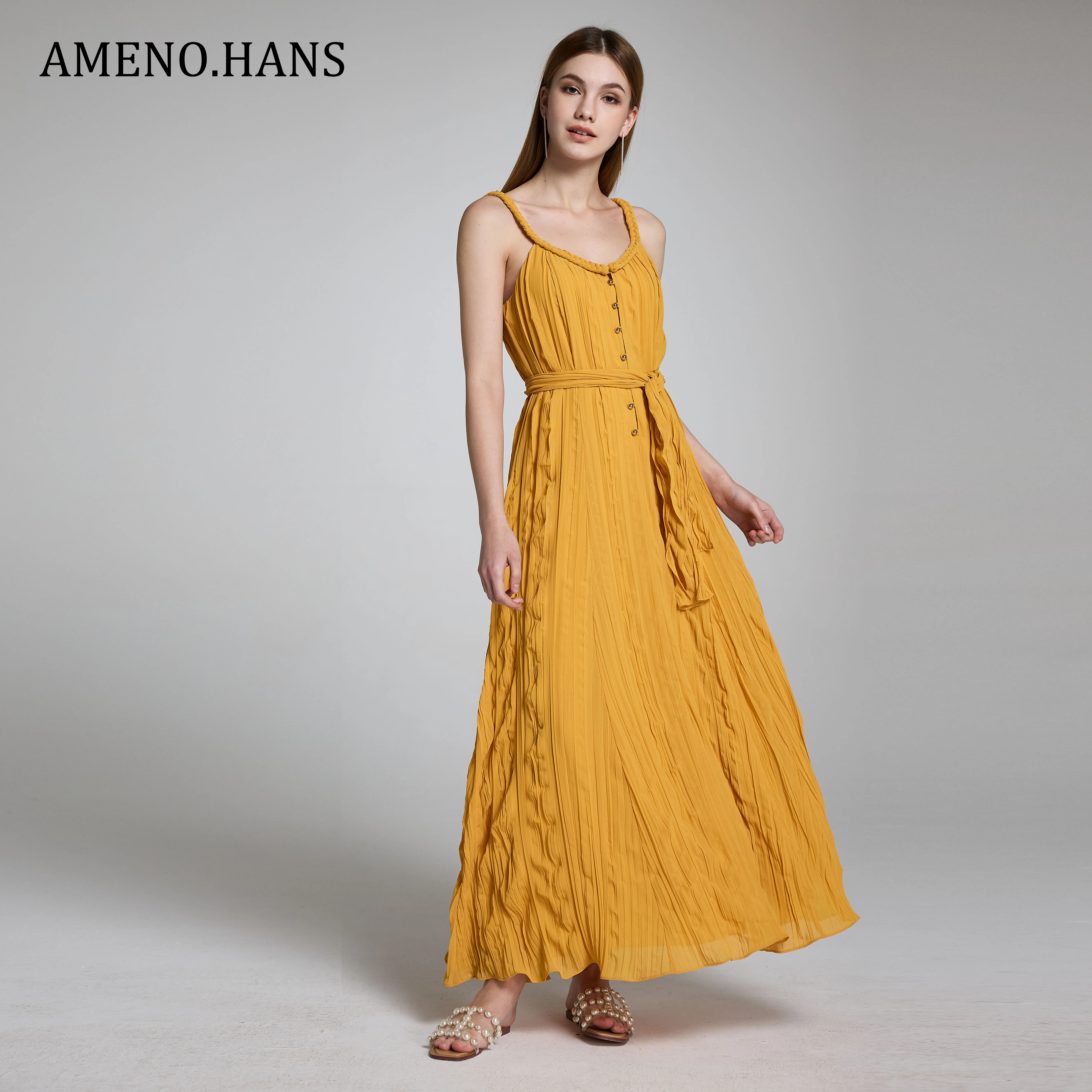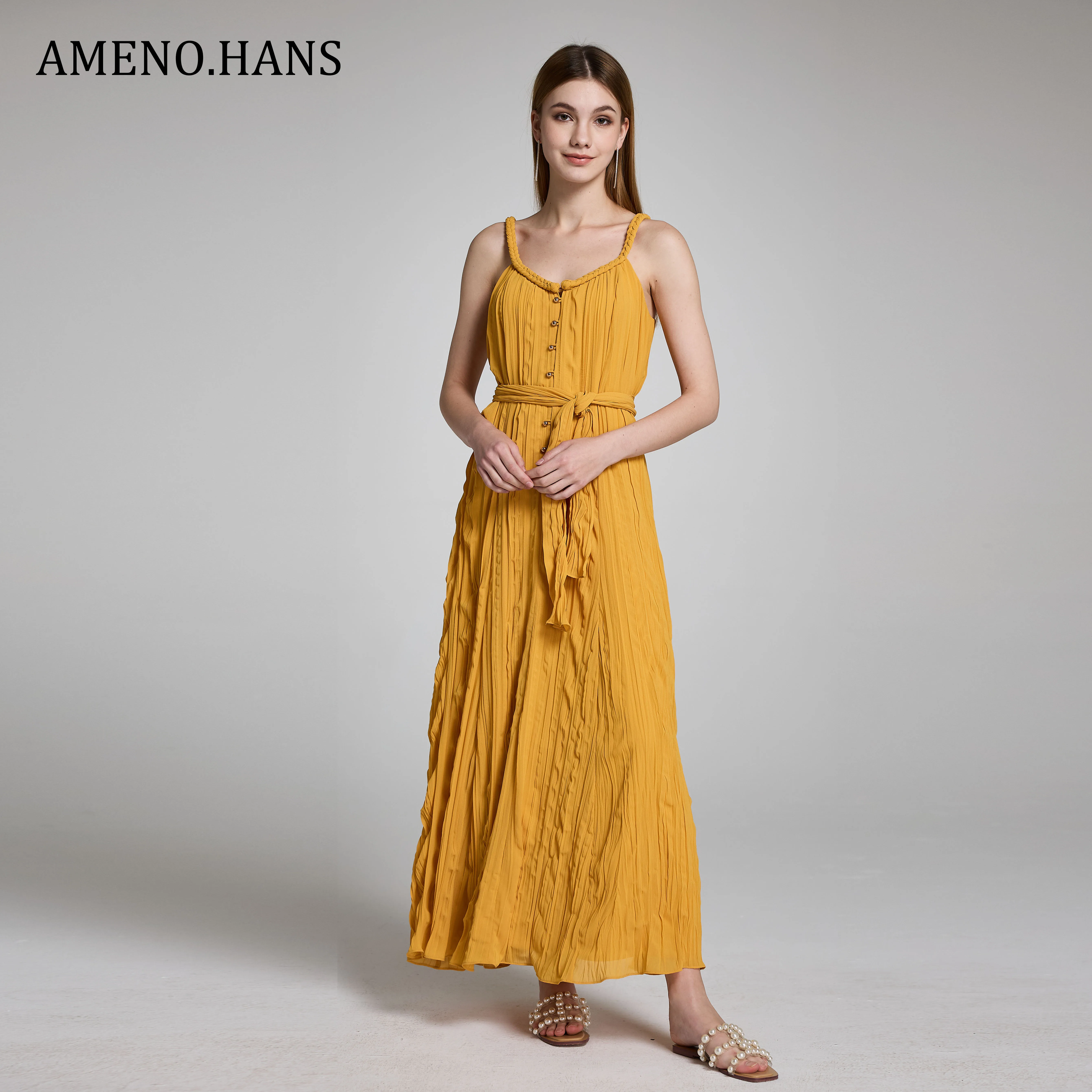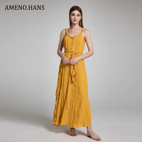 Product Name: High Quality Ladies Pleated Casual Summer Solid Color Sashes Sundress Beach Maxi Dresses