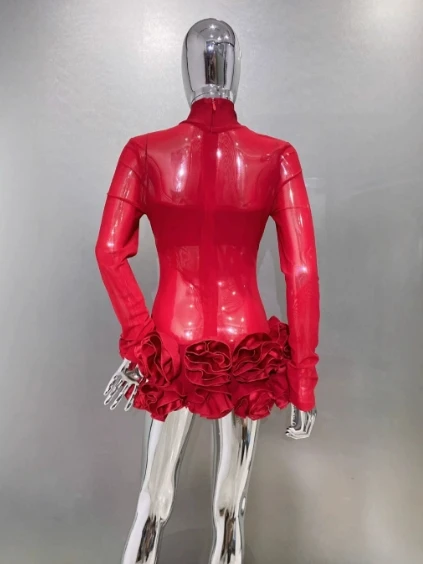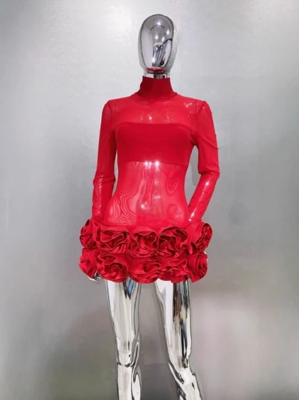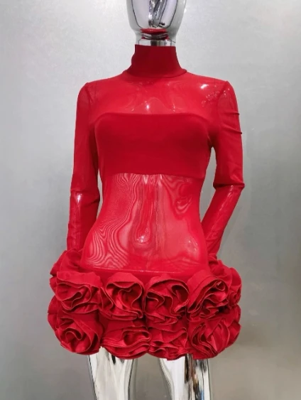 Product Name: High Quality Woman Fashion Clothes Fancy Mini Long Sleeve Dresses Women Beautiful Sexy Flowers Dress