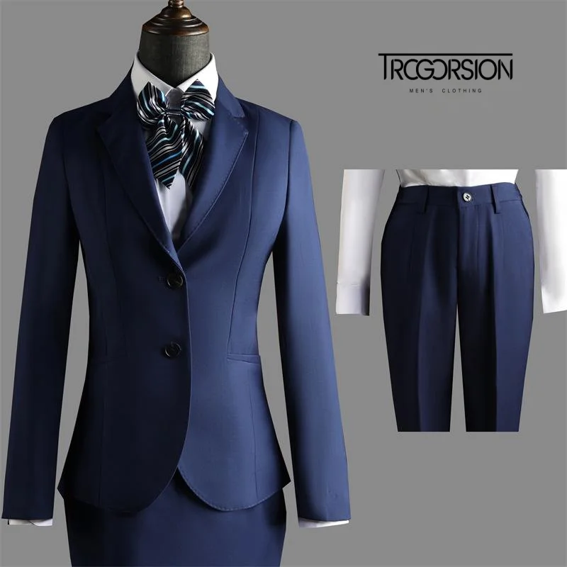Product Name: High Quality Women’s Blue Business Dress Suit Overalls Professional Nonwoven Women’s Blazer for Formal Bank Work Women’s Suit
