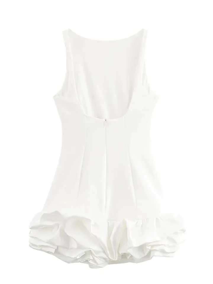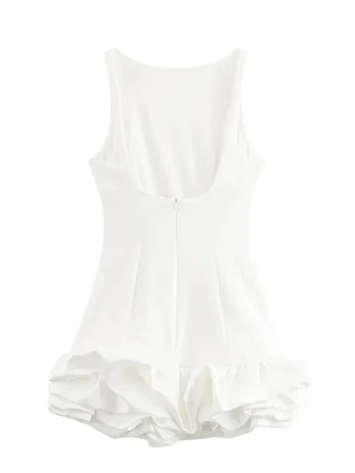 Product Name: Holiday Lady Evening Party Vestidos Women Elegant Ruffled Hem Folds Short Sundress Chic Y2K Sleeveless Backless Mini Dress