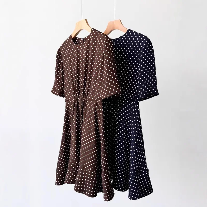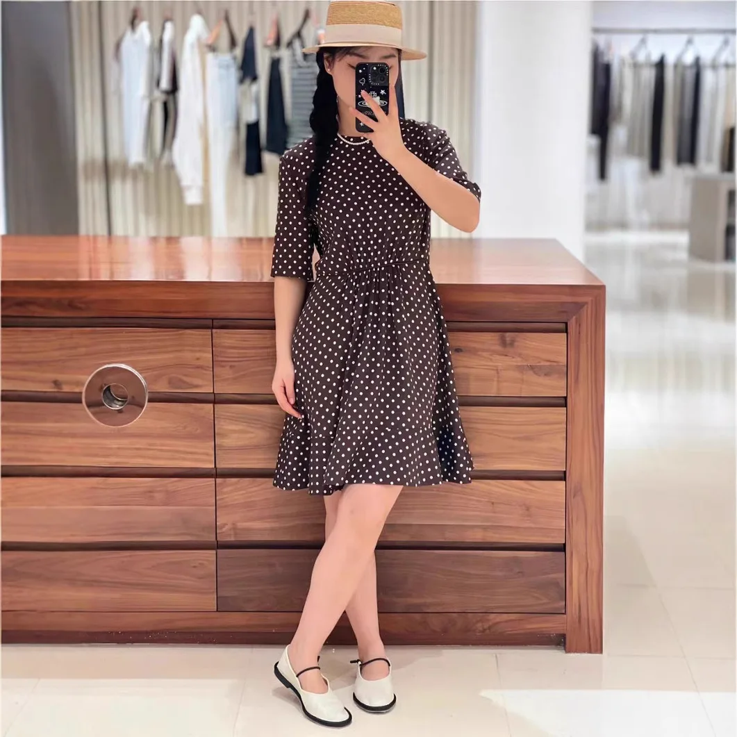 Product Name: IC2025 Spring Summer New Satin Casual Dresses Elegant Mid-Length Crepe Elastic Waist izable Brand Solid