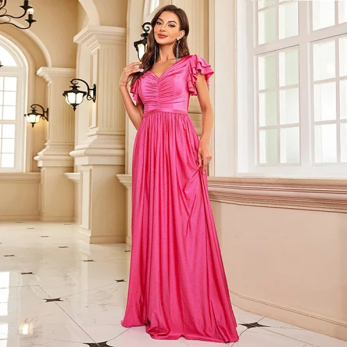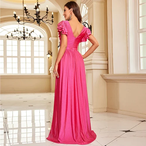 IMPEREAL 2024 Luxury Short Sleeve Evening Gown Woman A-line Fushia Elegant Bridesmaid Dresses for Graduation Party