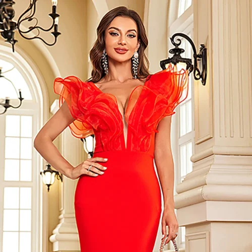 Product Name: IMPEREAL 2024 Luxury Sleeveless Deep V-Neck Sequins Evening Dress Backless Evening Gown Wedding Party Maxi Dress