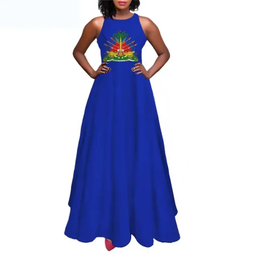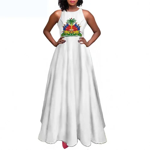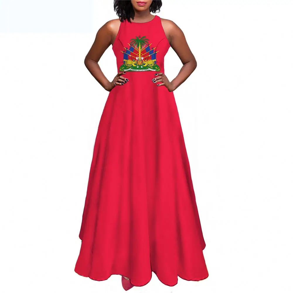 in Bulk Women’s Long Dresses Fashion Haiti Flag Design Sleeveless Sexy Party Dress for Girls Female Elegant Sundress