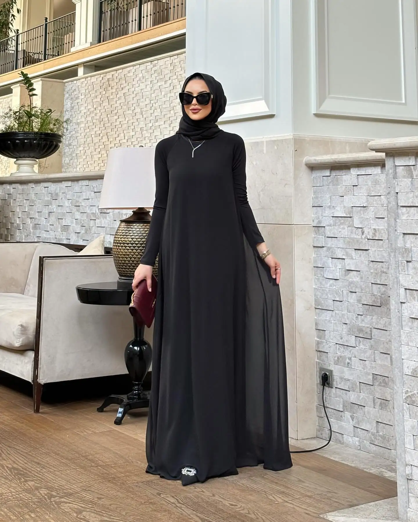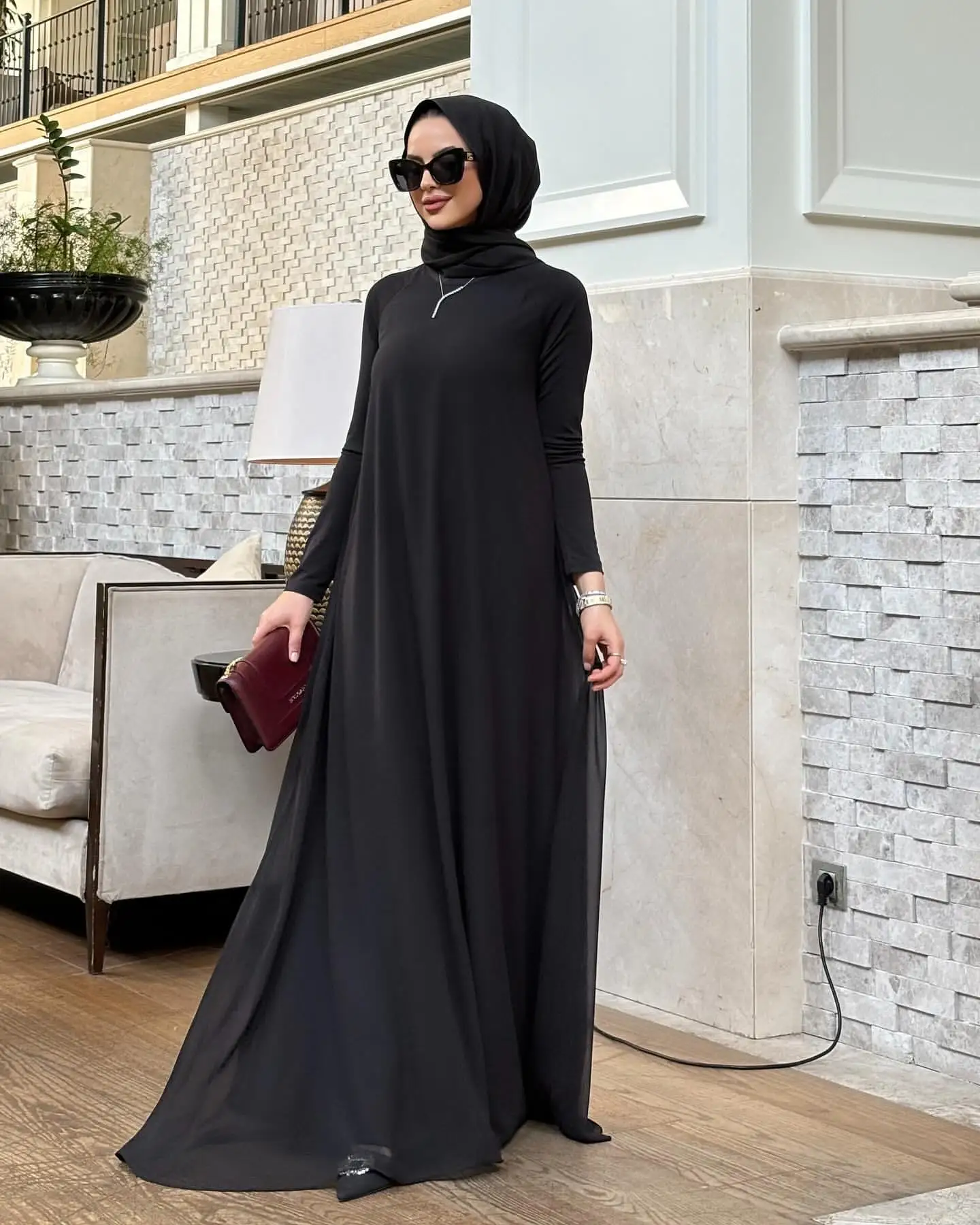Product Name: Islamic Clothing Women’s Turtleneck Sundress Casual Long Sleeve Abayas Dubai Dresses for Muslim Women