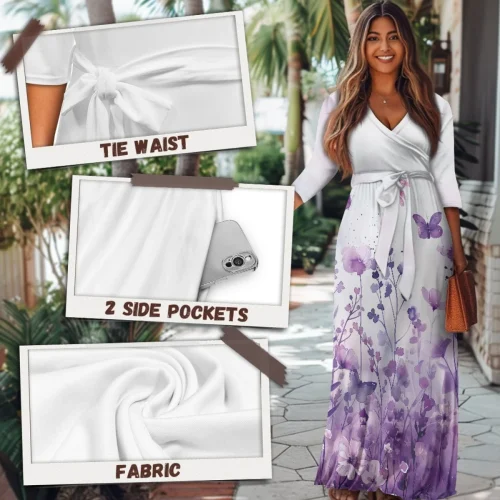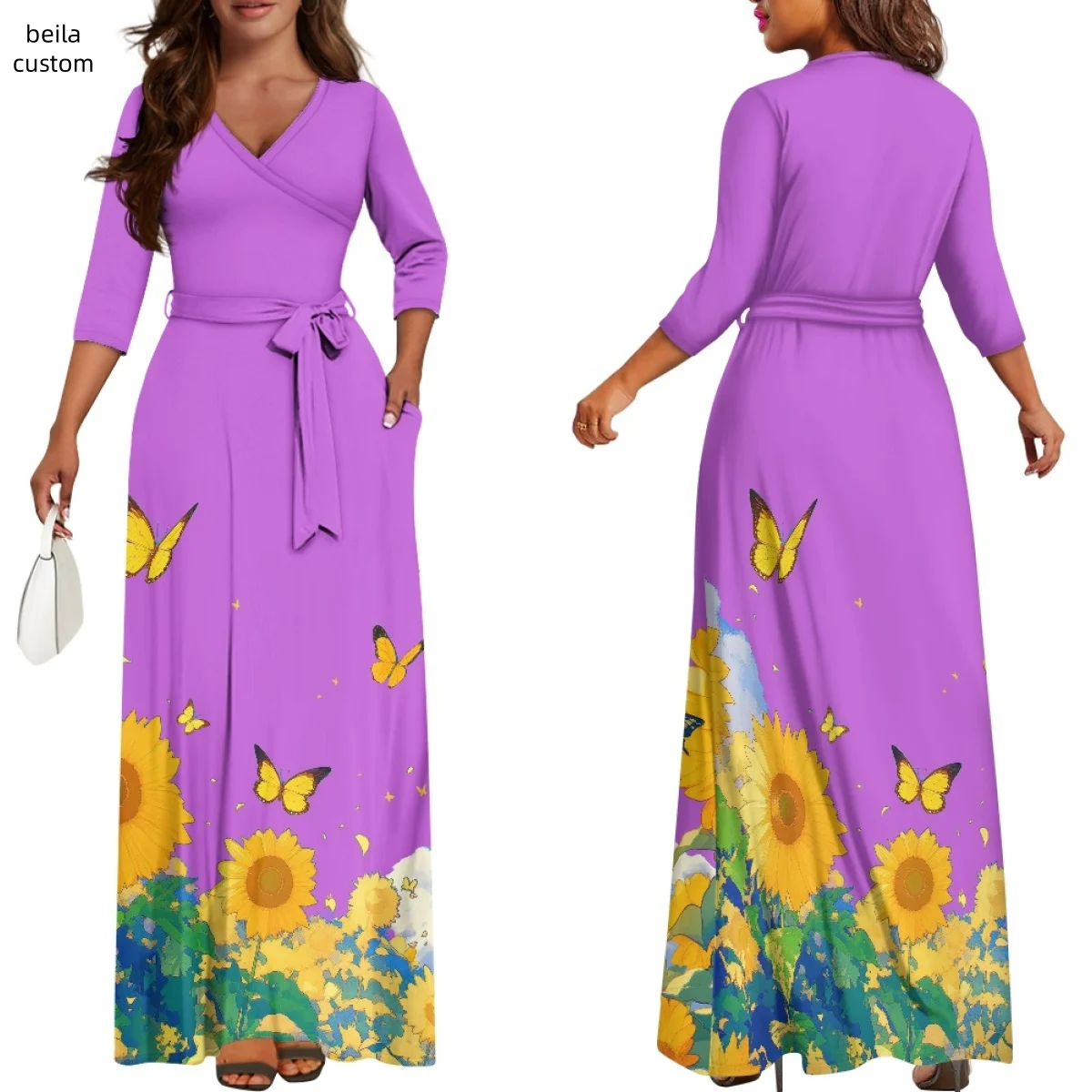 Product Name: izable High-grade Deep V-neck Purple Sunflower Formal Elegant Long Party Dresses