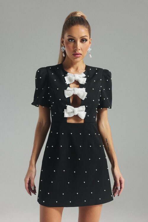 Karolina Pearl Bow knot Mini Dress