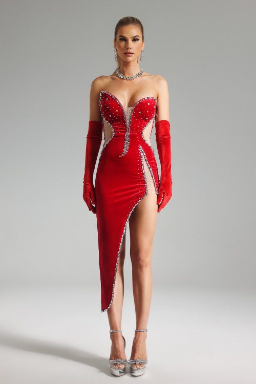 Katya Diamond Embellished Velvet Dress