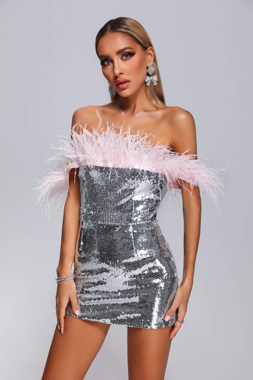 Be the first to review “Kolari Off Shoulder Feather Sequin Mini Dress” Cancel reply