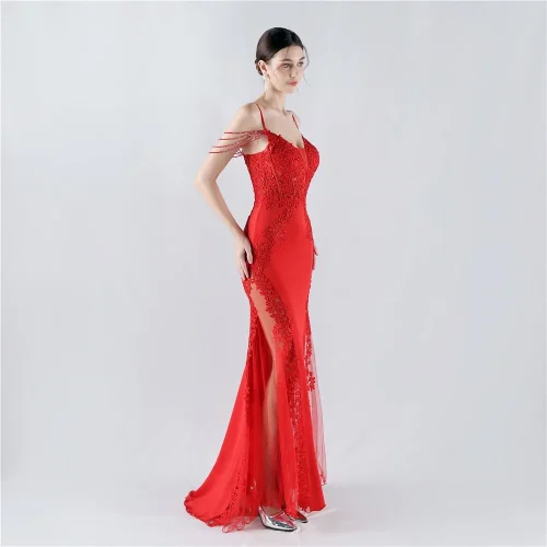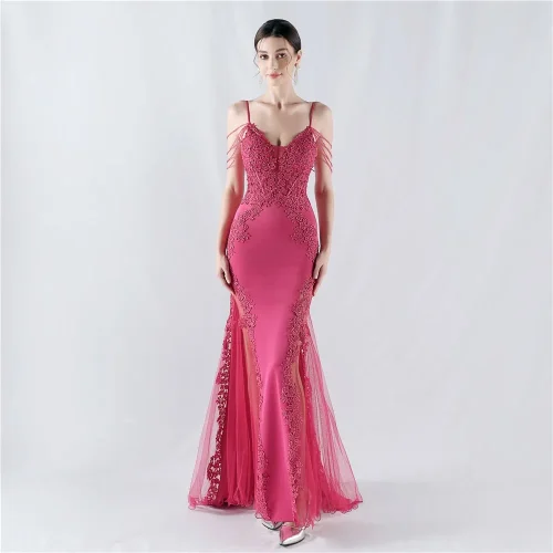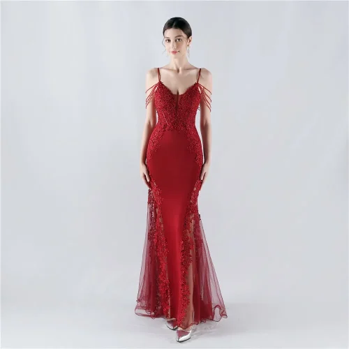 Product Name: Lace Embroidery Rhinestone Elegant Evening Dress Fishbone Mesh Hollow Backless Women High End Small Tail Evening Dress