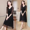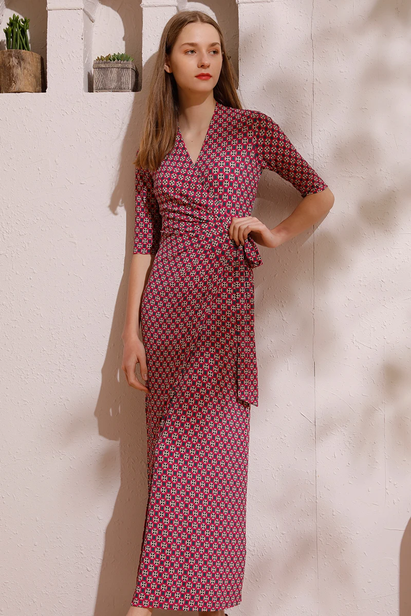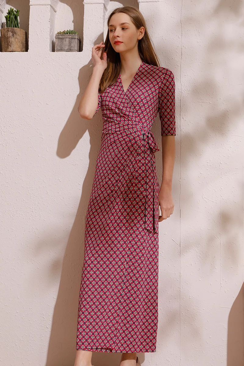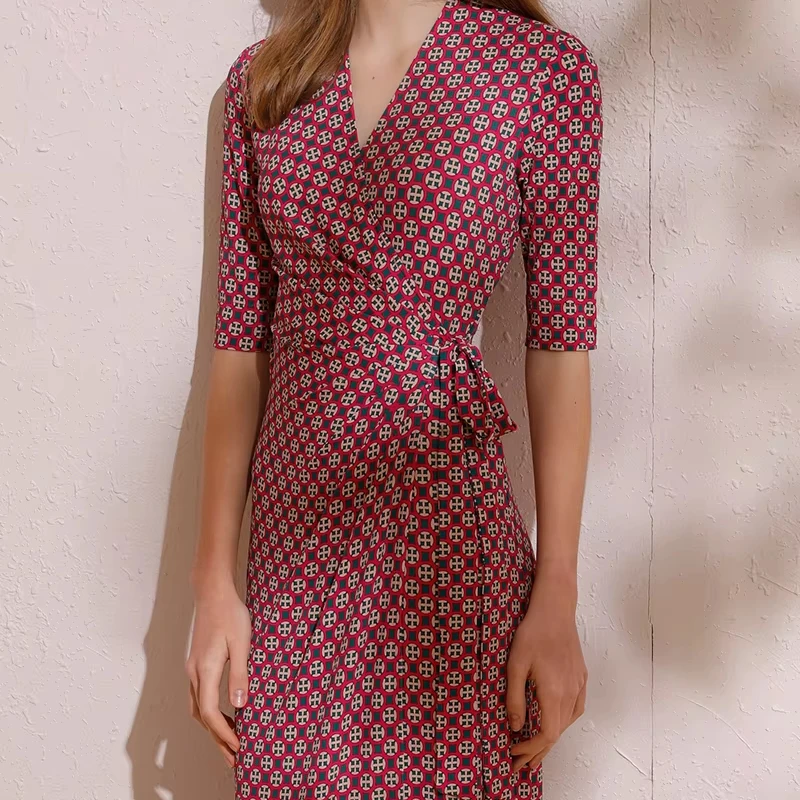 Latest Casual Office Lady Style Dress Plus Size Floral Bodycon V-Neck Waist Tie Button Decoration Slim Fit Digital Natural Back