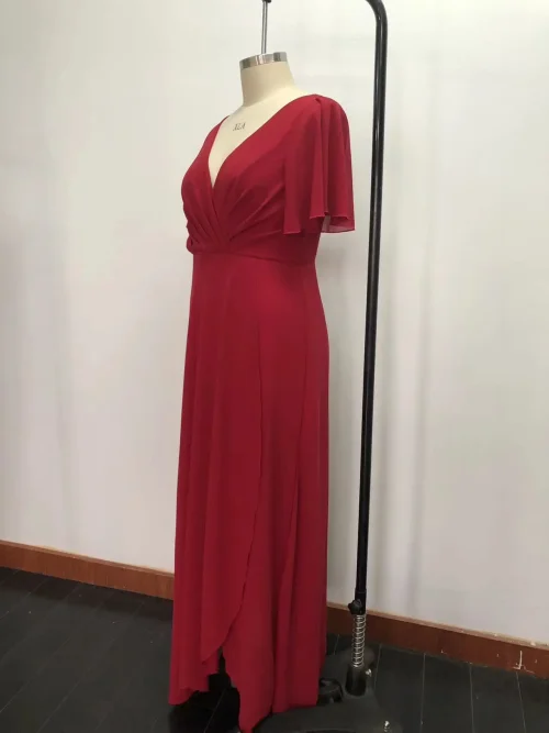 Model Number: Red V-Neck Party Dress