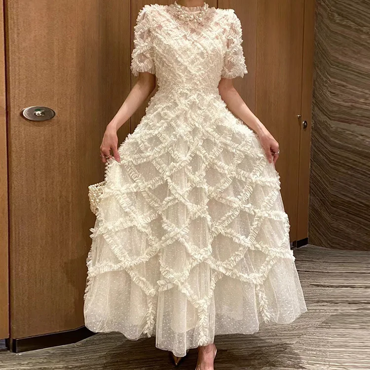 Product Name: LE2544 High Quality Lace Dresses Elegant Socialite Vacation Gauze Dress Europe and the United States Embroidery Evening Gown