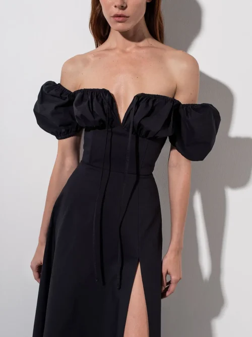 Product Name: Long Dress Woman Elegant Puff Sleeves Maxi Dress Plain High Split Off Shoulder Party Wear Vestidos Sundress Holiday Lady