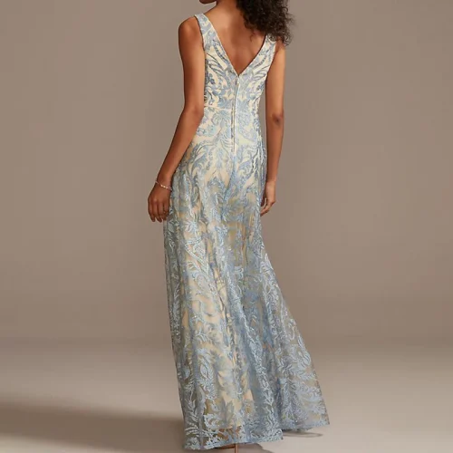 Product Name: Long Embroidered Mesh A-line Deep V-neck Dress Women Strapless Dinner Dress Evening