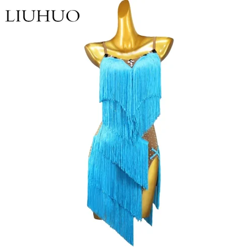 Product Name: LUHUO Superior Fashion Sleeveless Latin Dance Skating Dress Rumba Skirt One Piece Stage Costume